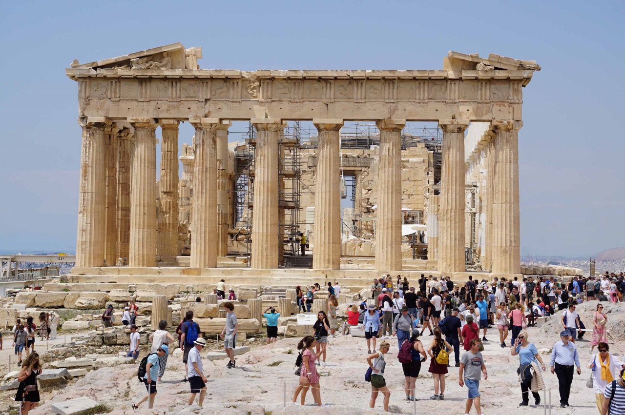 denen Leute im Parthenon (der größte und wohl bekannteste der Tempel auf der Akropolis)