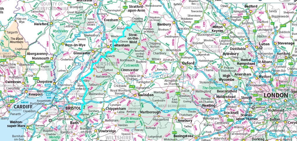 und endet in der Weltkulturerbestadt Bath, in der Nähe von Bristol. Oder umgekehrt, jeder wie er mag.