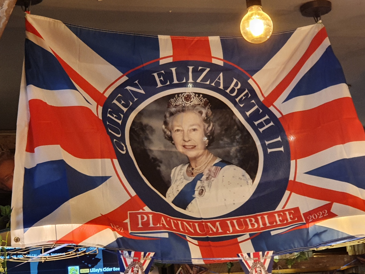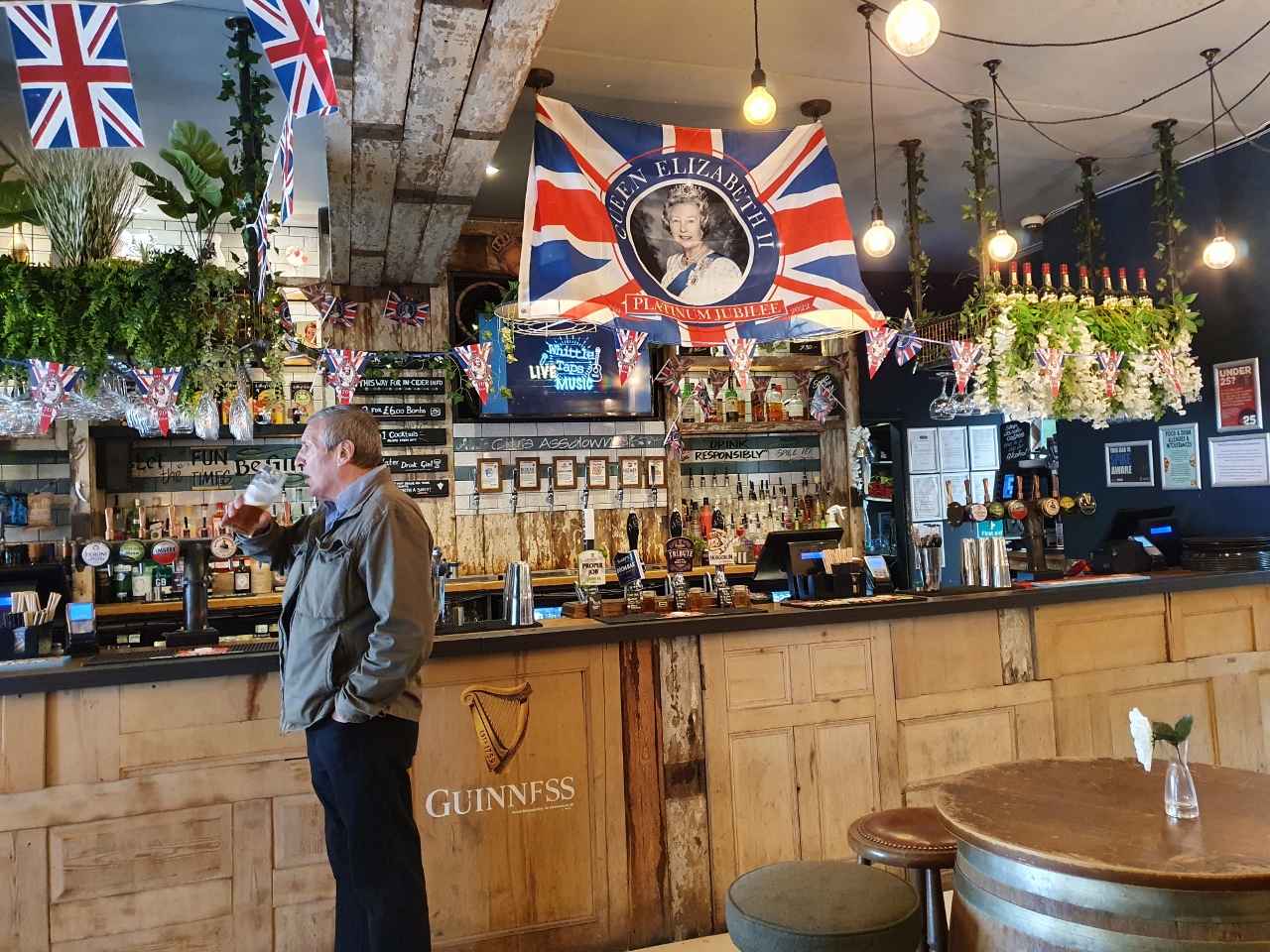 und schauen mal, wie die Pubs hier von innen ausschauen. In jedem ist man bereits bestens auf das "Platinum Jubilee" von Königin Elizabeth II vorbereitet, da läst der Engländer nix anbrennen.