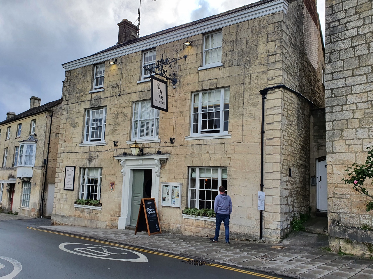 Weg und kommen kurz darauf am Golf Club House vorbei, mit der erwähnten Bar. Wenige Meter später erreichen wir Painswick