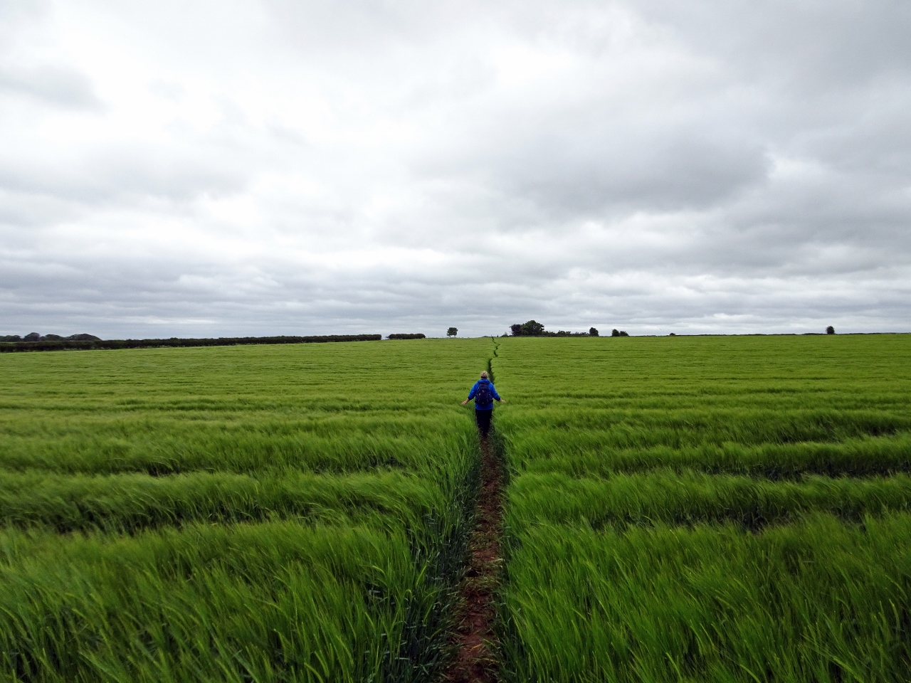 geht es zuerst entlang einer Straße, dann durch die Felder.