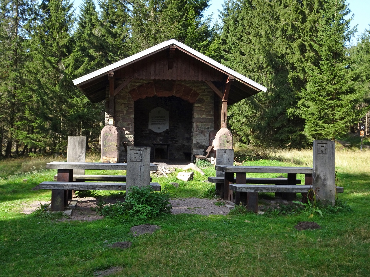 Je weiter wir wandern, umso schöner wird das Wetter, es wird sogar angenehm warm. Nur der kalte Wind bleibt uns erhalten. Die erste Einkehrmöglichkeit des Tages ist bei Kilometer 17 von 23. Das "Rennsteighaus" an der "Neuen Ausspanne" entpuppt sich als Würschtlbude, hat aber immerhin geöffnet. Der Wirt ist nett, die Getränke ausreichend kalt und die Thüringer Rostbratwurst lecker.