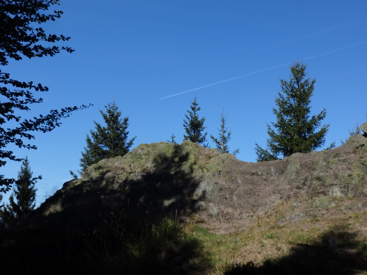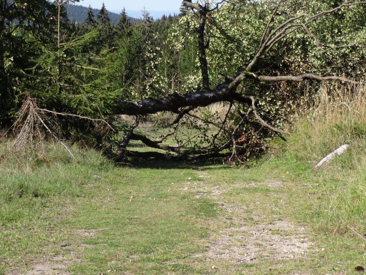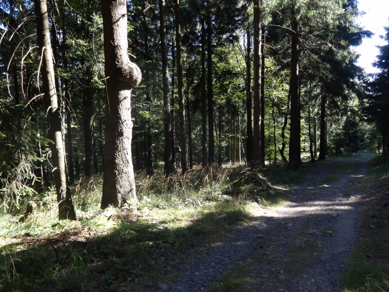 Gut gestärkt setze ich meine Reise anschließend über die "Grenzwiese" fort, hier beginnt der Anstieg zum Großen Inselberg. Es gibt eine leichtere und eine schwerere Aufstiegsvariante. Ein älteres Paar diskutiert, welche Variante zu wählen sei, worauf sie ihm im Brustton der größten Selbstverständlichkeit zu verstehen gibt: "Natürlich die schwere Variante! Wozu hab ich dir denn die Wanderstiefel gekauft?"