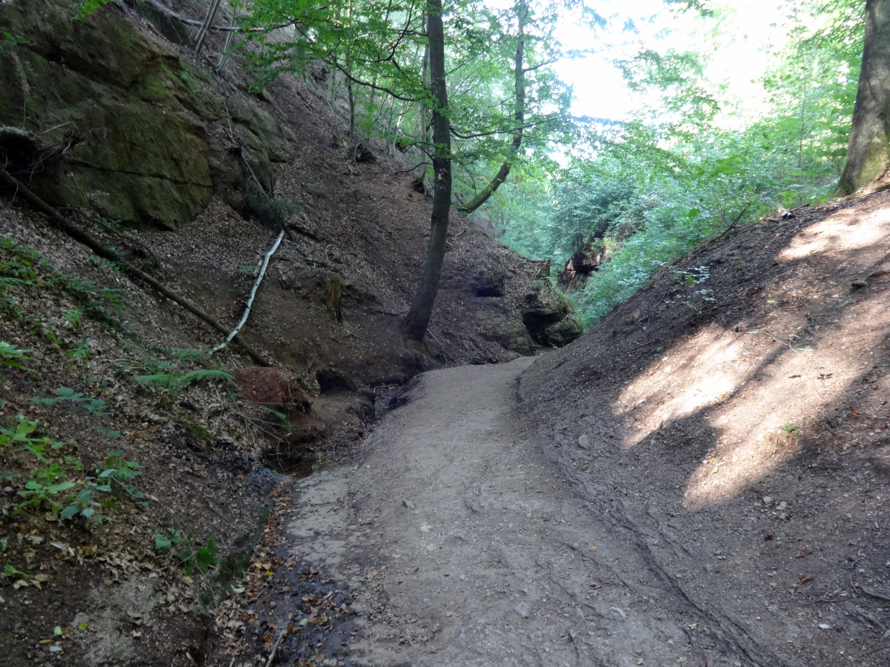 Am frühen Nachmittag kommen wir an der "Hohen Sonne" an, einem Park- und Rastplatz, der Ausgangs- und Zielpunkt zahlreicher Wanderer ist. Es ist Samstag, entsprechend voll ist es hier, wir machen trotzdem kurz Rast, von hier ab geht es nur noch durch eine der Schluchten abwärts nach Eisenach. Wir wählen die laut aller Recherchen spektakulärste, die Drachenschlucht. Obwohl hier wirklich Rush-Hour herrscht, ist es ein eindrucksvolles Naturschauspiel.