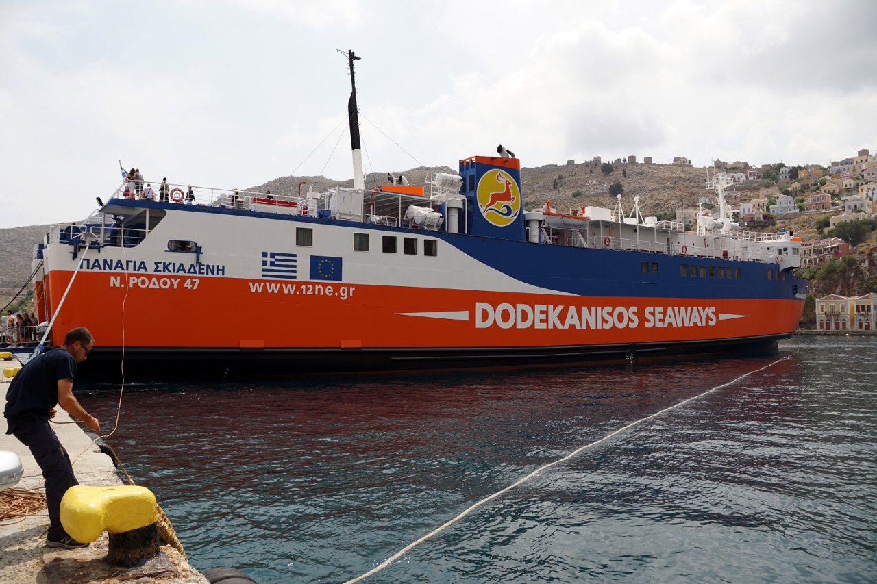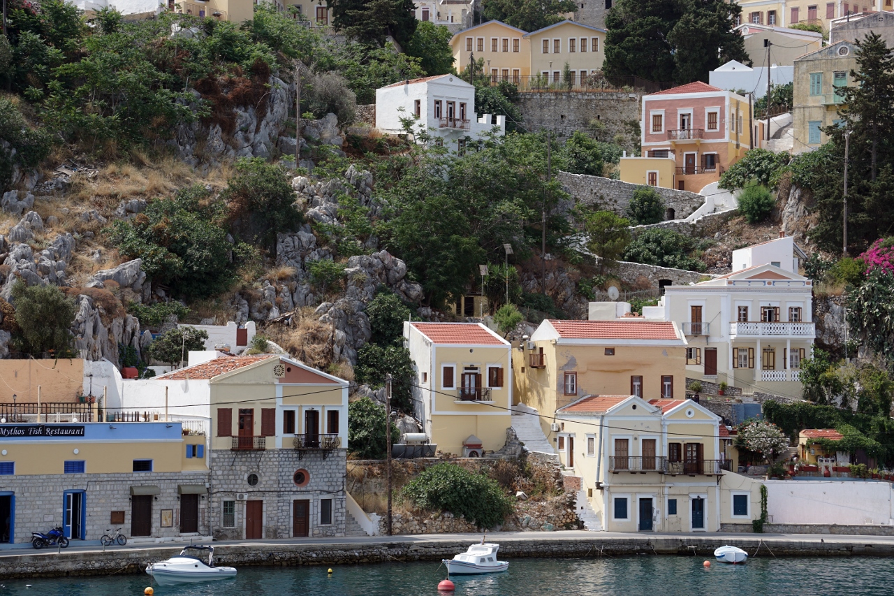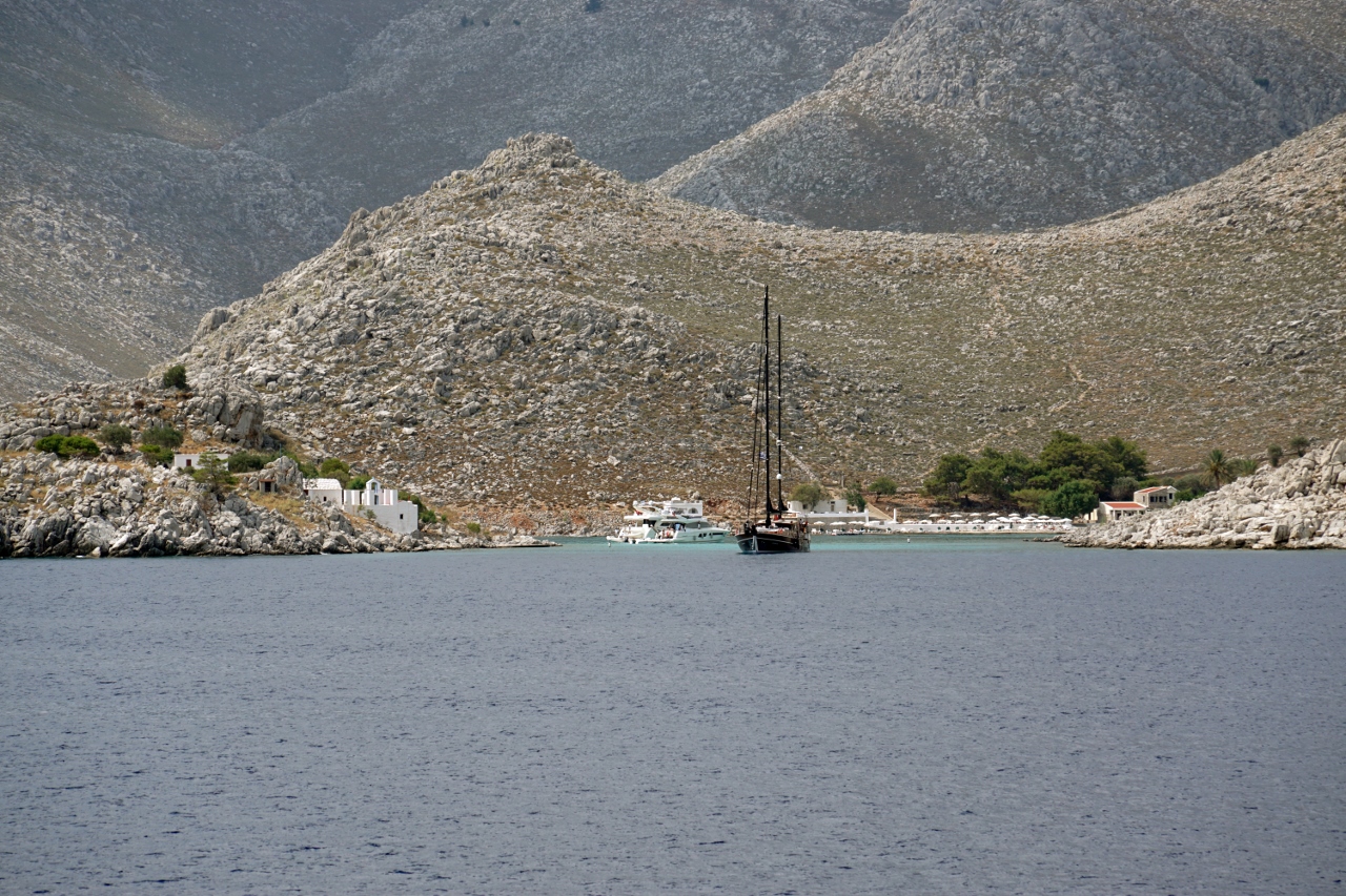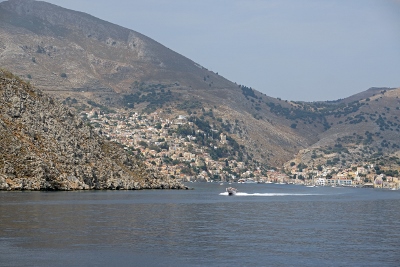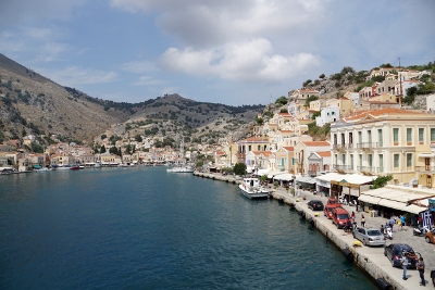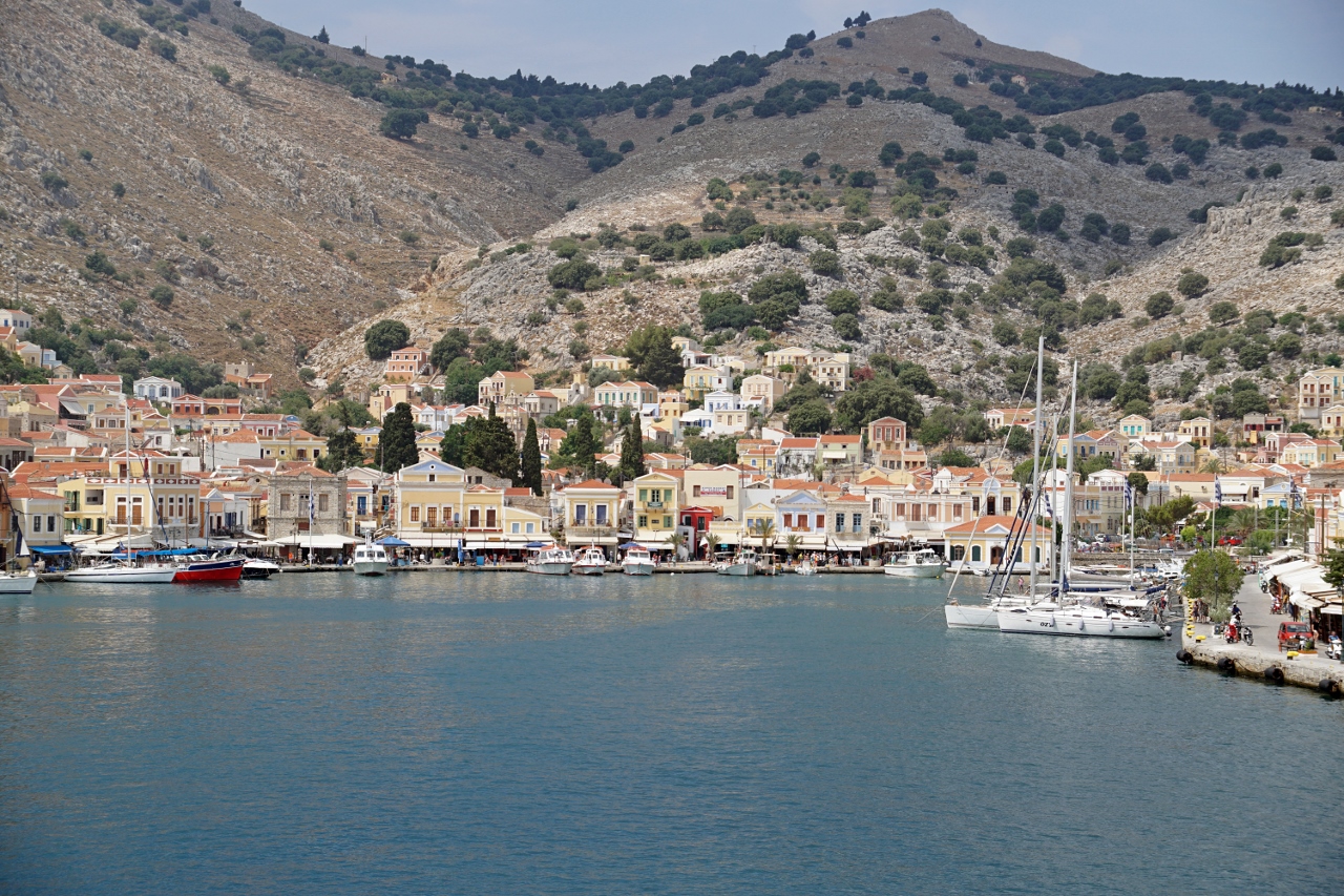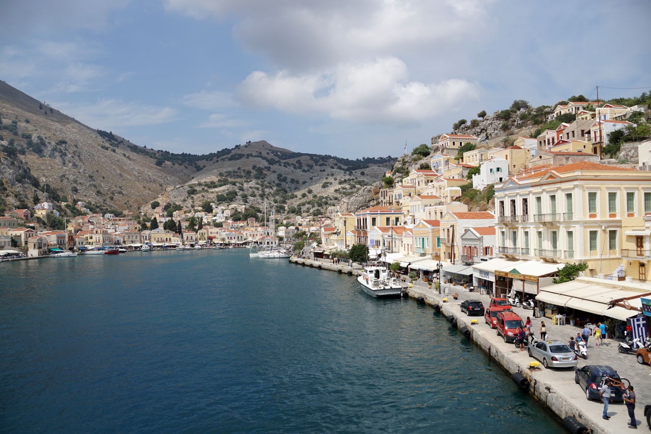 überlege, ob der Mini-Hafen auf Symi dafür überhaupt ausreicht.