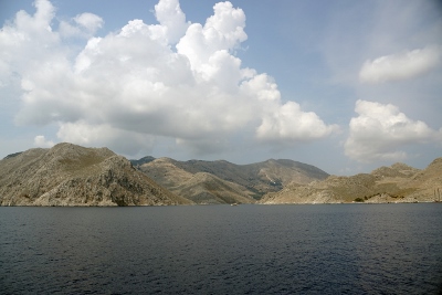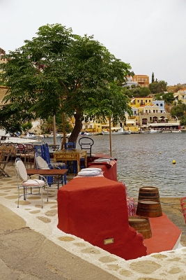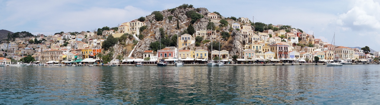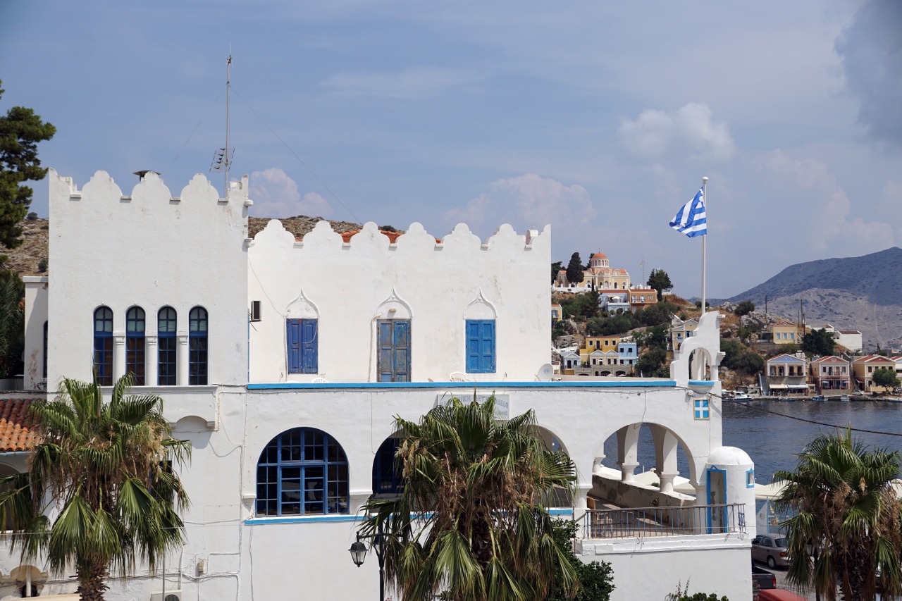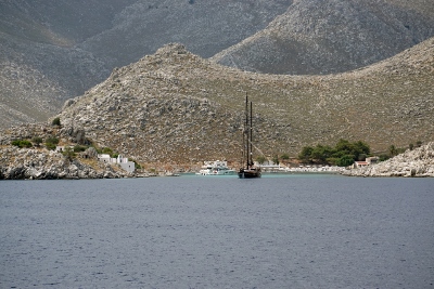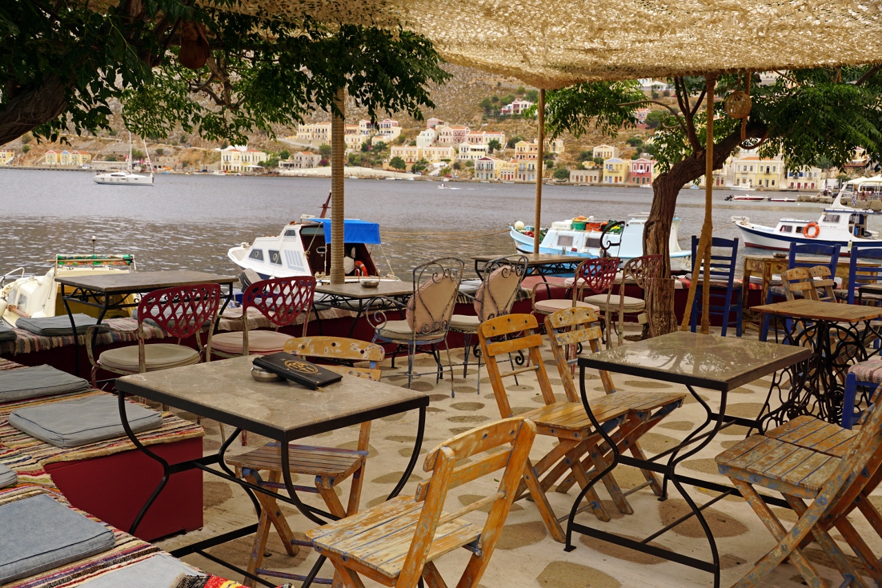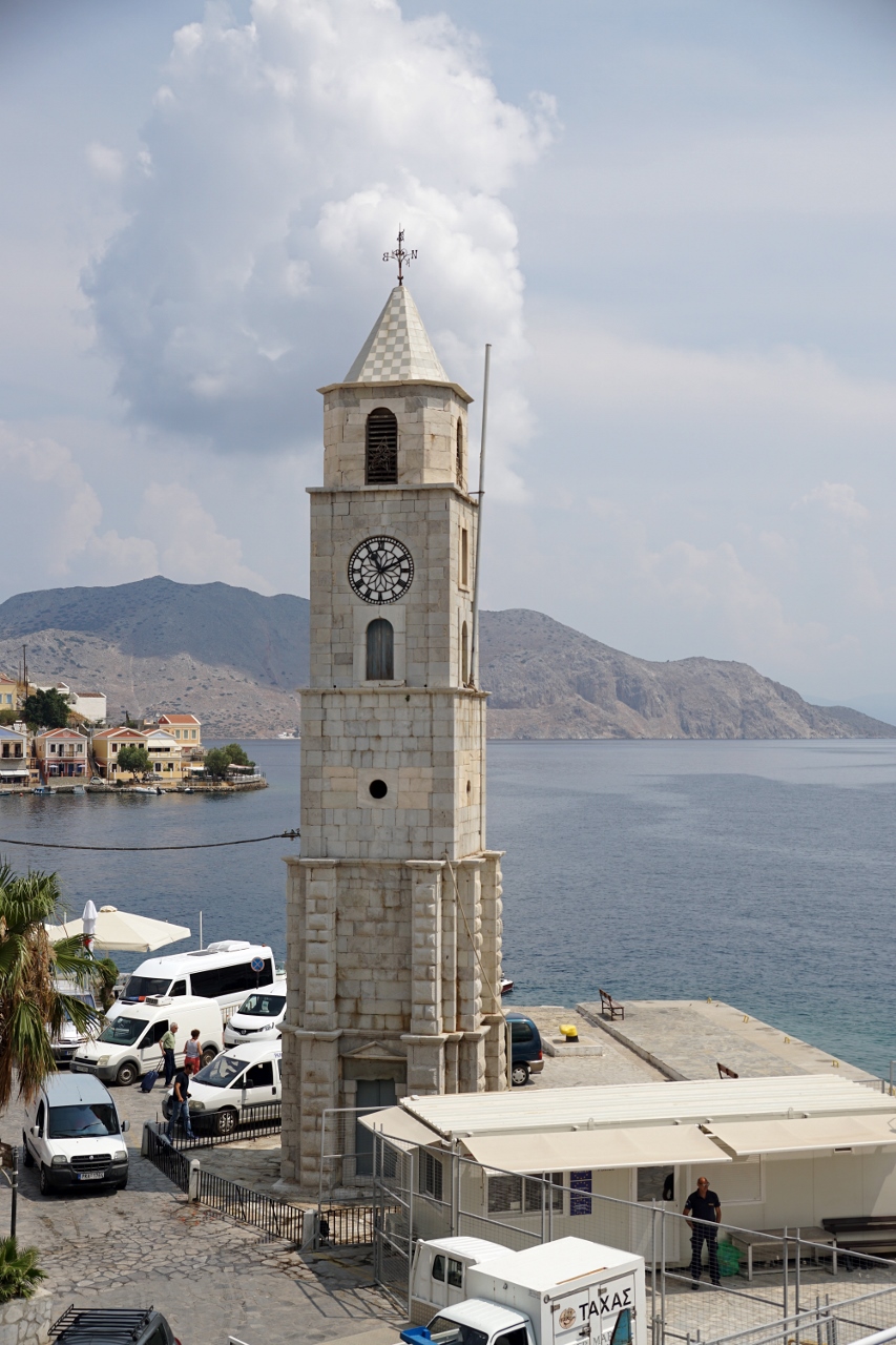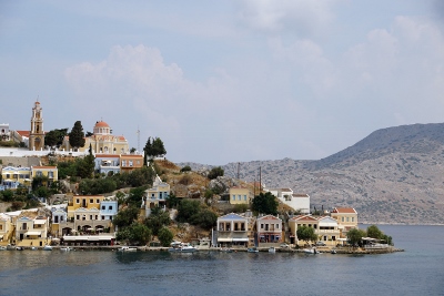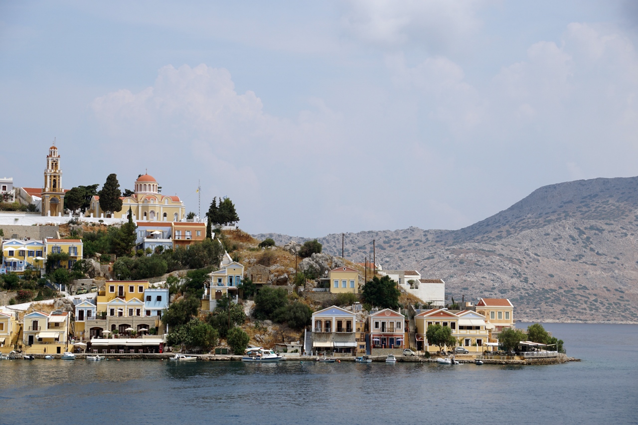 überlege, ob der Mini-Hafen auf Symi dafür überhaupt ausreicht.