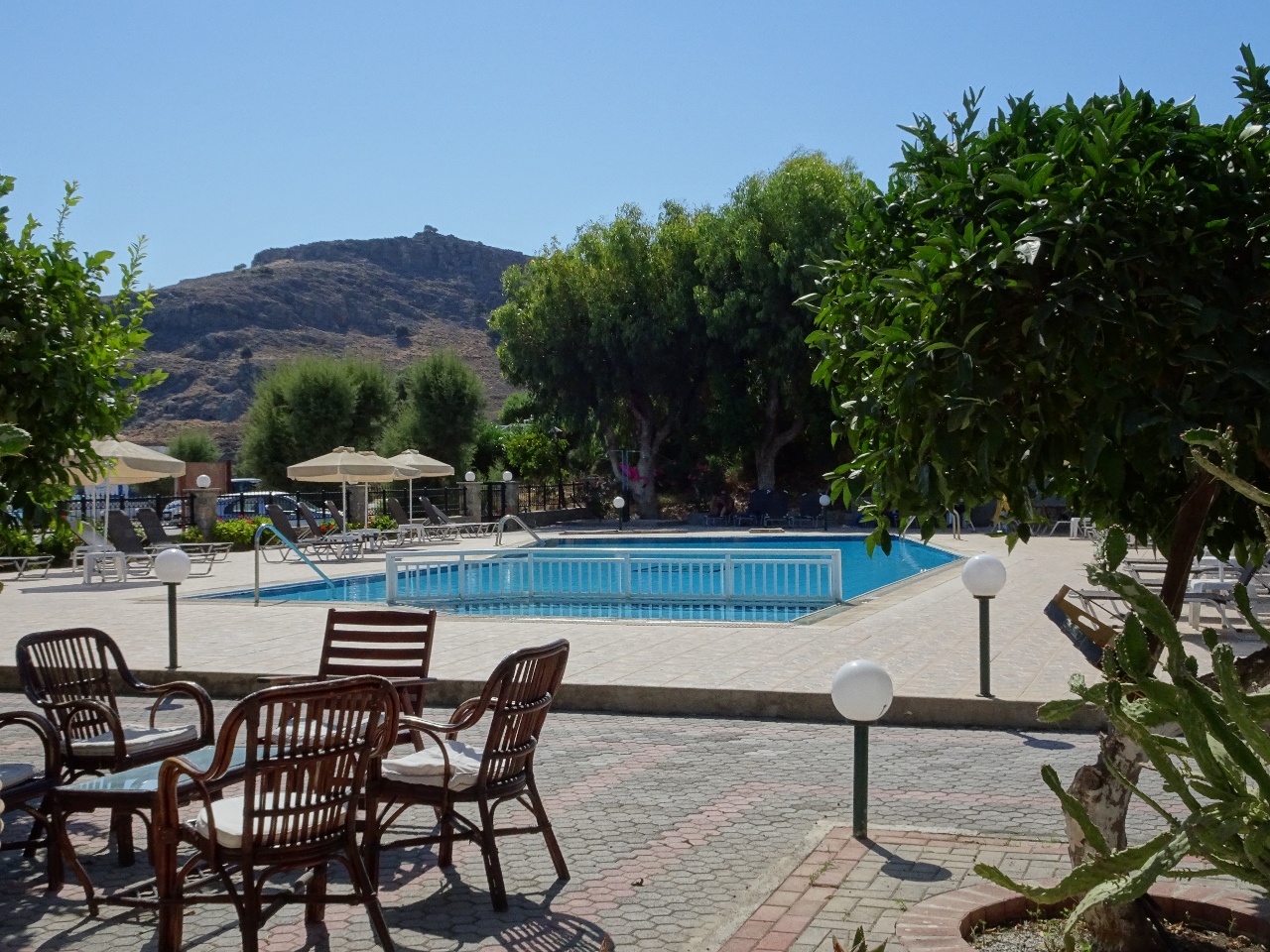 Wir checken ein und fahren erst mal mit dem Taxi nach Lindos, es