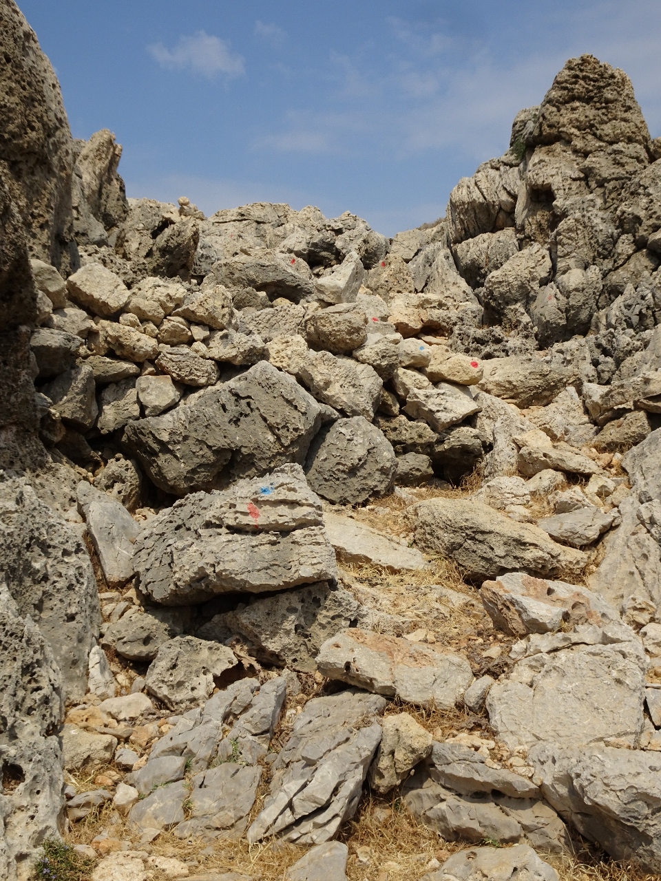 rutschigen Geröllweg, dann über eine Art Steintreppe. Wieder am