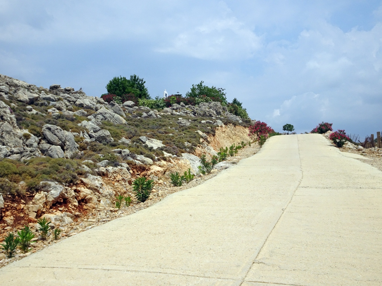 einiger Zeit eine betonierte Straße, die steil nach oben führt.