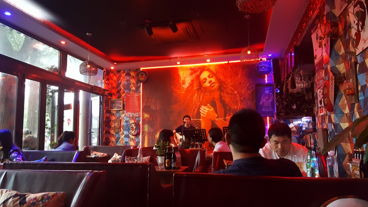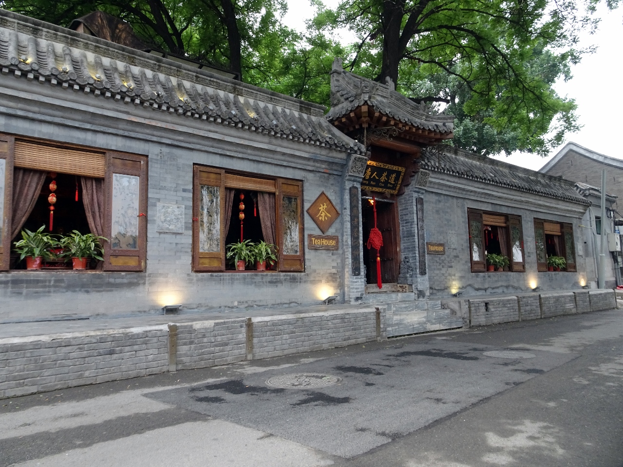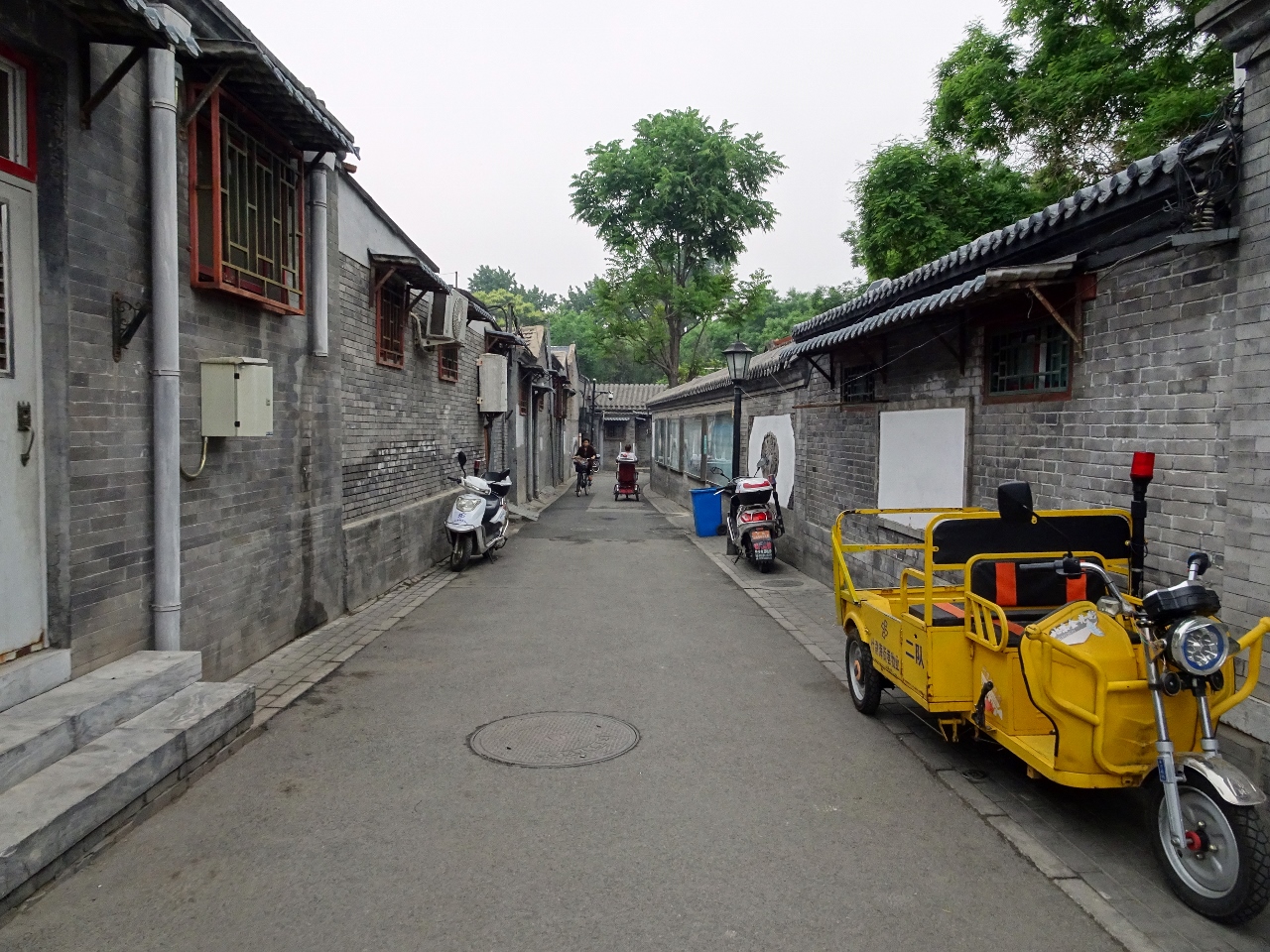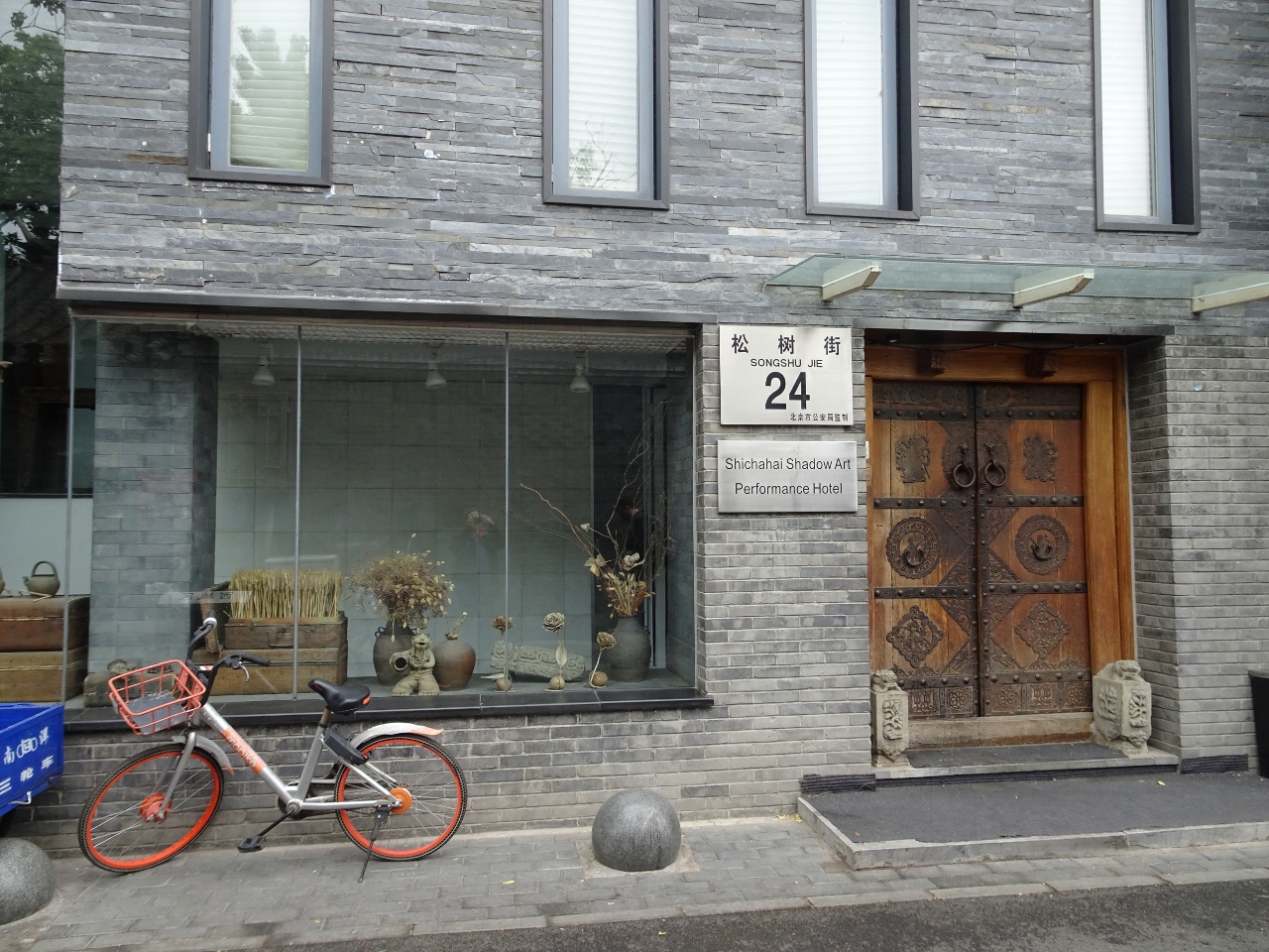 Das Viertel schaut tatsächlich auf den ersten Blick wenig nach Tourismus aus, es handelt sich dabei um ein sogenanntes Hutong-Viertel (Hutong heißt schmale Gasse), ein typisches Wohn- und Einkaufsviertel des alten Peking. Diese Viertel ziehen sich um eine Folge kleiner Seen im Herzen Pekings herum und bilden das Zentrum der Stadt. Der Stadtteil heißt Xicheng, das Areal rund um die Seen nennt sich wohl Shichahai. Unser Hotel ist von außen sehr unscheinbar, wir gehen über eine Treppe in den Keller hinab, dort offenbart sich aber ein sehr modernes kleines Boutique Hotel.