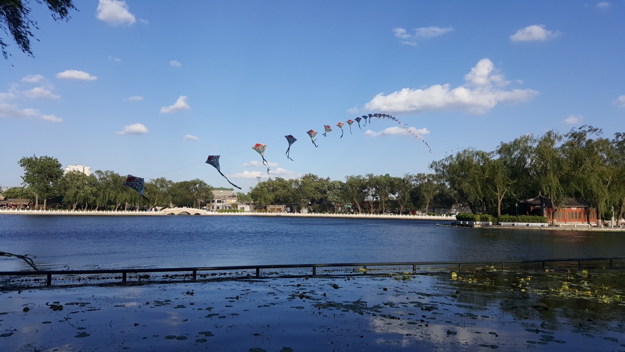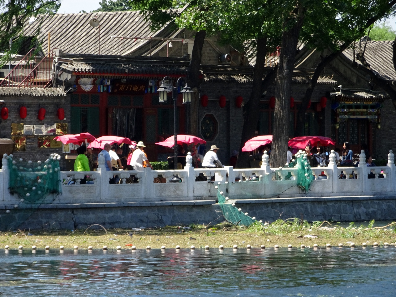 Unser Zimmer ist noch nicht bezugsfertig, also ziehen wir erst mal los. Wir wandeln einmal um die Seen-Kette herum, essen eine Kleinigkeit und stellen fest, dass das hier wohl ein beliebtes Ausflugsziel ist. Es gibt jede Menge Bars und Restaurants und in den angrenzenden Vierteln einige Läden, die eher nach Tourismus, als nach Alltagsbedarf ausschauen. Entsprechend geht`s hier auch zu, es ist Samstag, wenn auch noch früh am Tage. Allerdings sind wir eine echte Attraktion, wir sind zwar nicht die einzigen Langnasen hier, aber doch deutlich in der Minderheit, immer wieder deuten kleine Kinder lachend auf uns oder winken uns. Ni Hao! (Hallo)