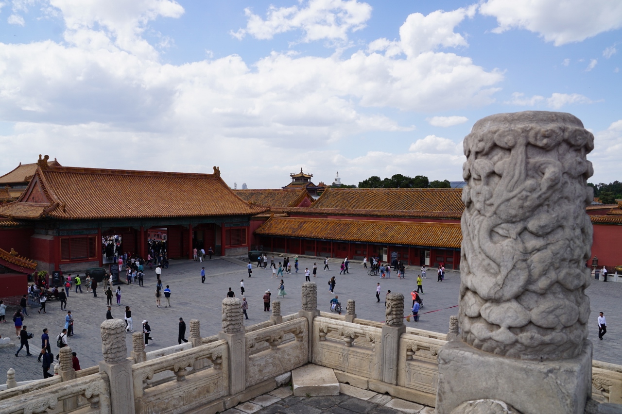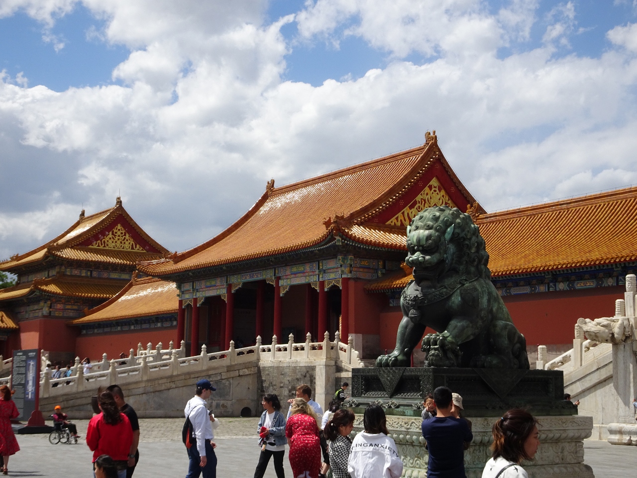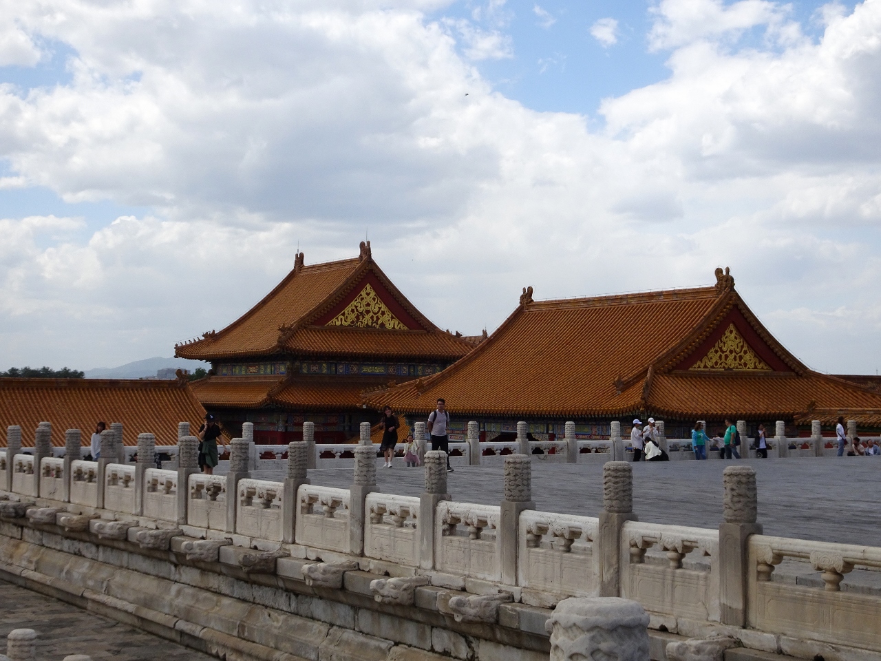 Was sich dann vor uns eröffnet ist eine atemberaubende, filmreife Kulisse. Die Bilder die man im Hoolywood-Movie "Der letzte Kaiser" zu sehen bekam, laufen direkt noch mal vor einem ab. Man kann diesen Anblick nicht beschreiben, das muss man sehen. Kelly erfreut uns wieder mit Unmengen Geschichten und Fragen und Späßchen, sie ist wirklich gut. Zwischendrin müssen wir mal einen Sprint einlegen, weil plötzlich einer der Zwischenhöfe von Uniformierten abgesperrt wird, wir erreichen gerade noch die nächste Treppe, also alles noch mal gut gegangen.