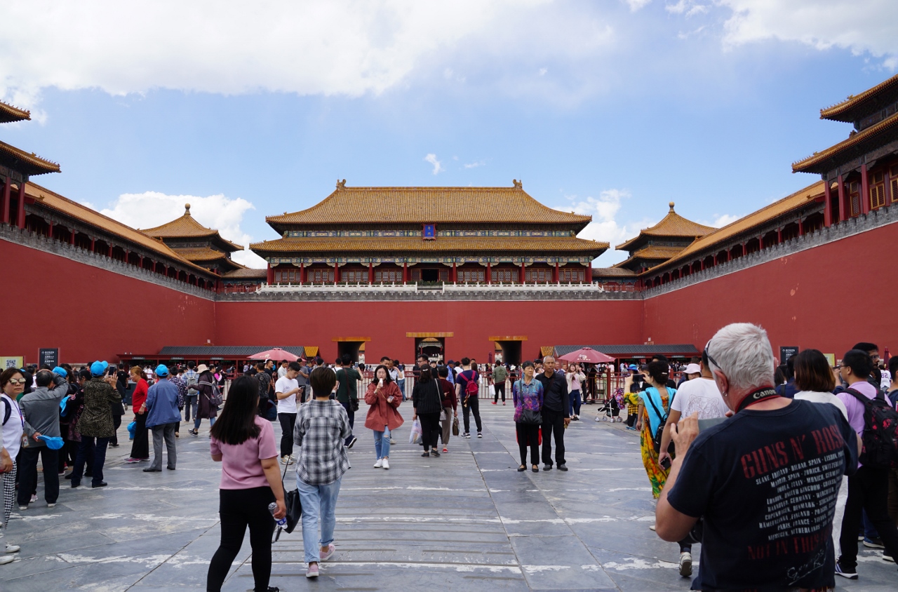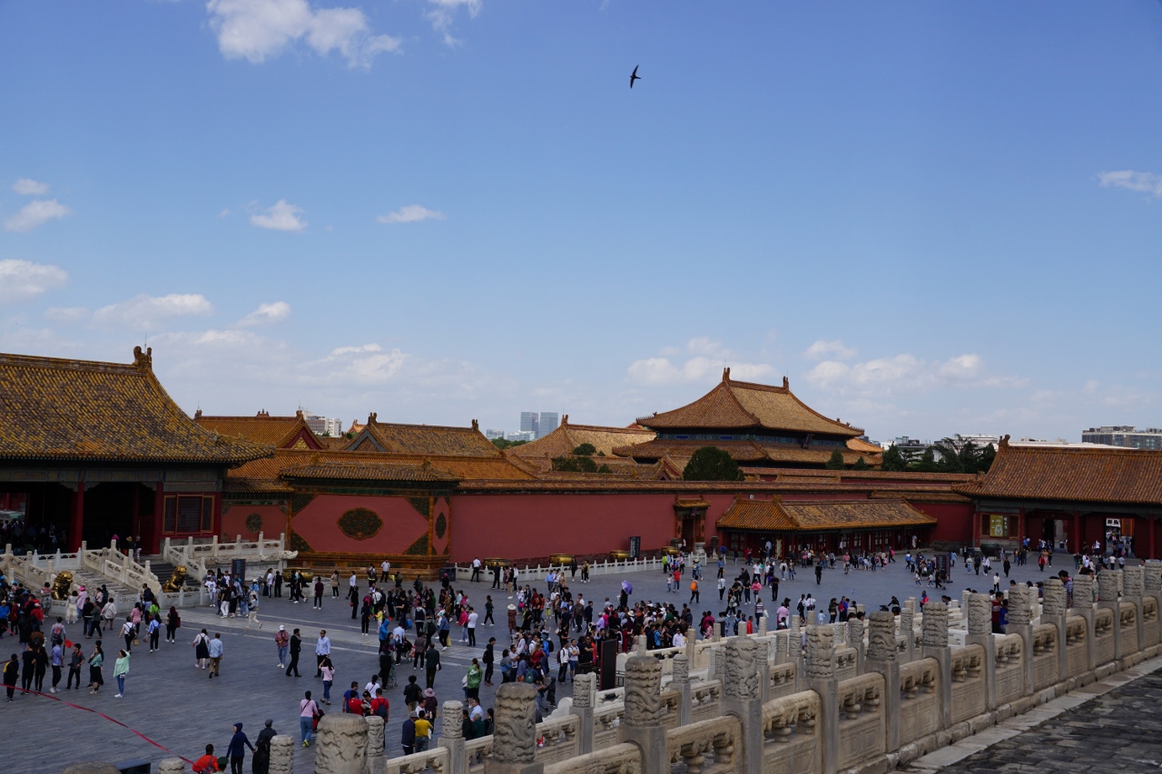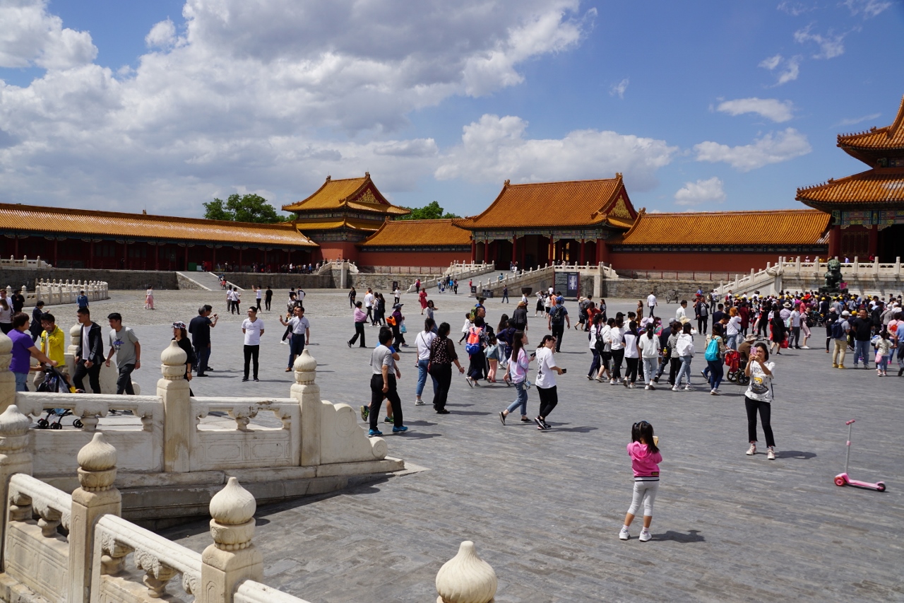 Was sich dann vor uns eröffnet ist eine atemberaubende, filmreife Kulisse. Die Bilder die man im Hoolywood-Movie "Der letzte Kaiser" zu sehen bekam, laufen direkt noch mal vor einem ab. Man kann diesen Anblick nicht beschreiben, das muss man sehen. Kelly erfreut uns wieder mit Unmengen Geschichten und Fragen und Späßchen, sie ist wirklich gut. Zwischendrin müssen wir mal einen Sprint einlegen, weil plötzlich einer der Zwischenhöfe von Uniformierten abgesperrt wird, wir erreichen gerade noch die nächste Treppe, also alles noch mal gut gegangen.