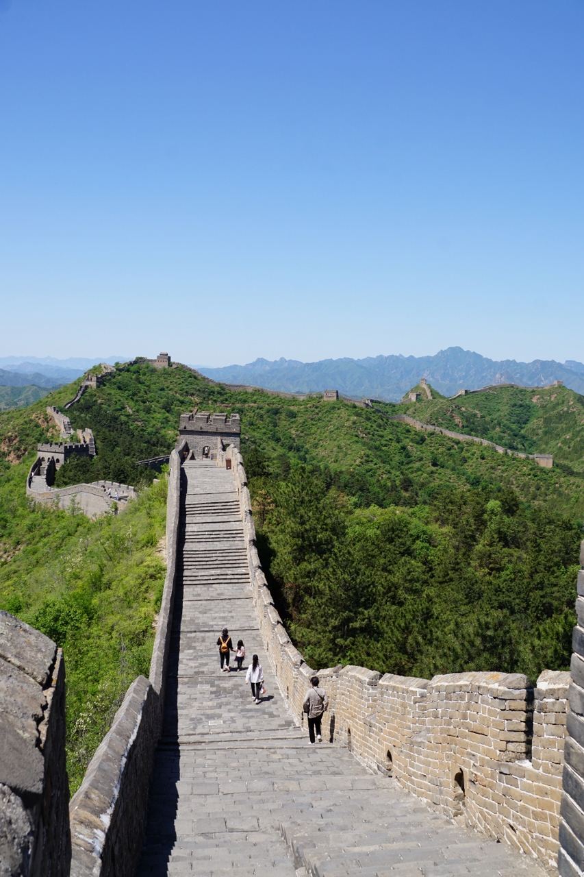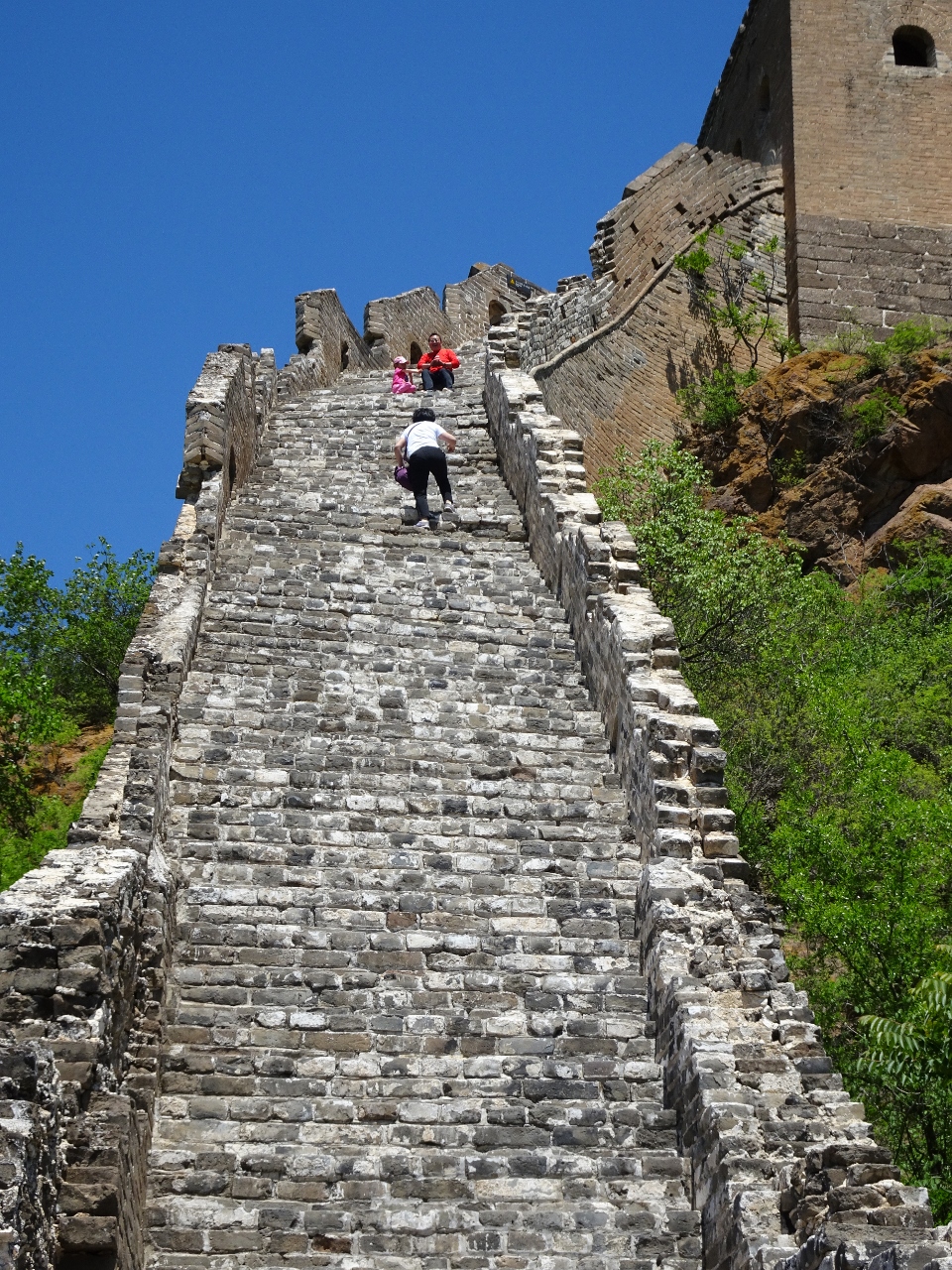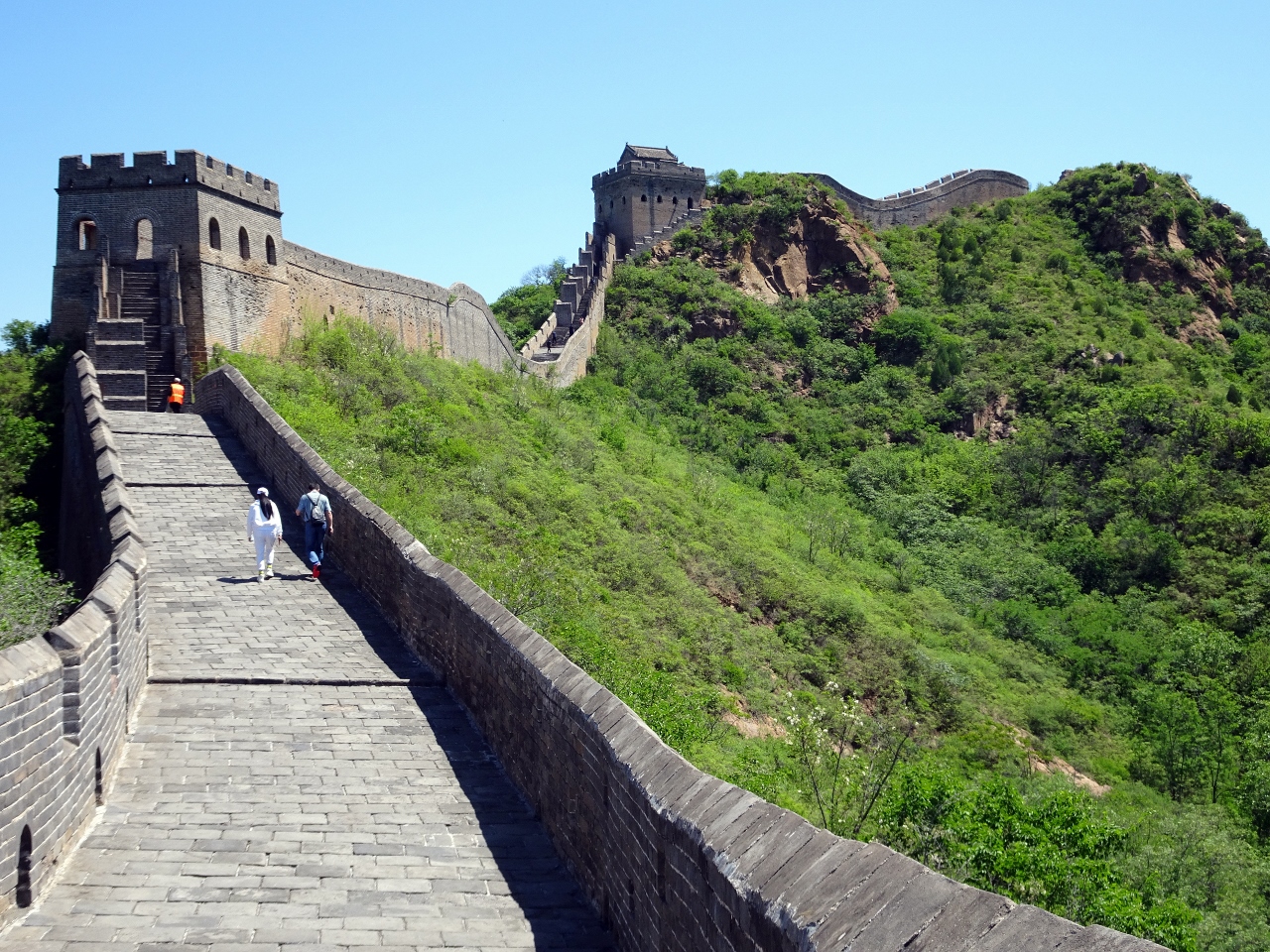 Die "alte" Lady haben wir dann übrigens während unserer Wanderung auf der Mauer nochmal getroffen. Sie hatte anscheinend ein Opfer für ihre Dienste gefunden. Das war ja sehr schön für sie, aber was mich stutzig machte war, dass sie uns aus der entgegengesetzten Richtung entgegenkam. Wie zum Geier ist die so schnell dahin gekommen, wo wir uns doch gerade die endlos vielen Stufen rauf und runterquälen?