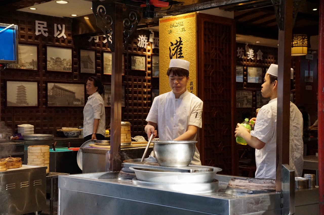 Nach der Rückkehr nach Xi`an legen wir erst mal eine Siesta ein, da es in der Stadt schon wieder brütend heiß ist. Gegen vier starten wir noch einmal und besichtigen den Bell Tower und den Drum Tower. Beide pagodenförmigen Bauwerke dienten dazu, mittels ihrer jeweiligen Instrumente die Zeit anzuzeigen, ob gemeinsam oder konkurrierend konnten wir nicht herausfinden.