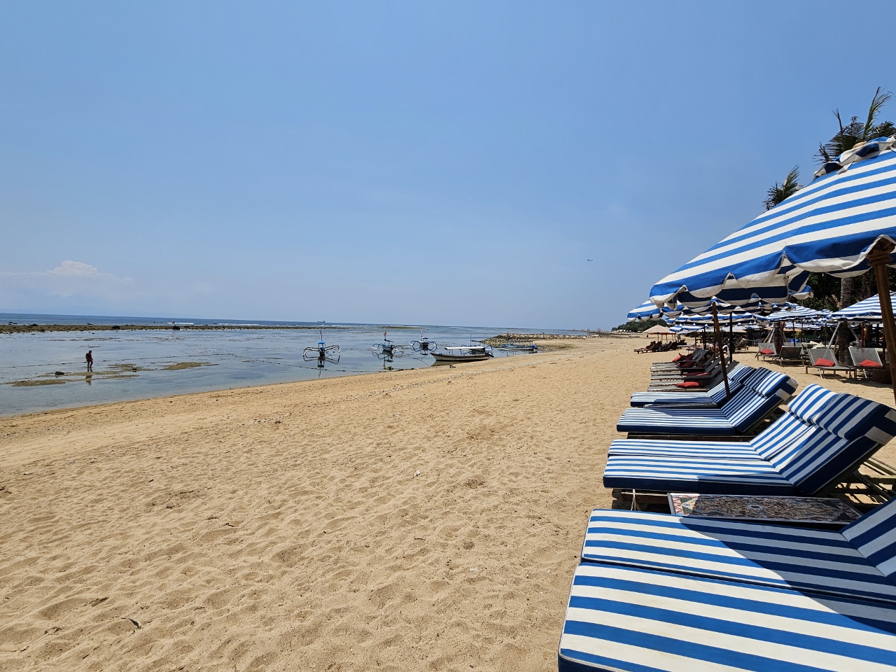 Hier in Sanur haben wir das einzige Mal eine Strandpromenade und