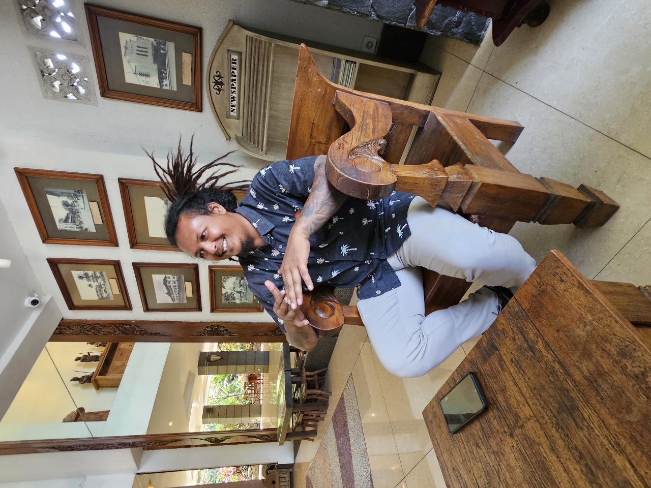 setzt sich zunächst mit uns in der Hotellobby zusammen um das