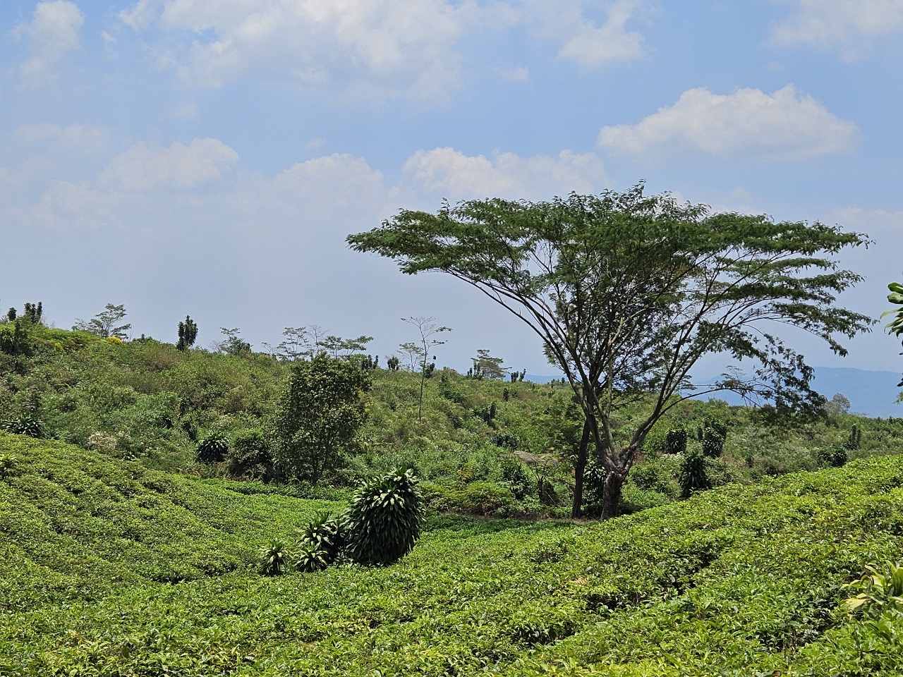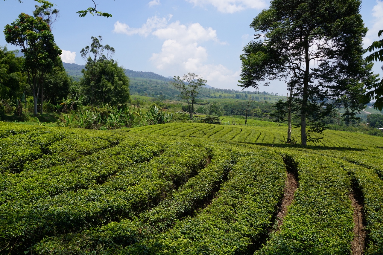 Nach einiger Zeit kommen wir im Teeanbaugebiet an. Weit