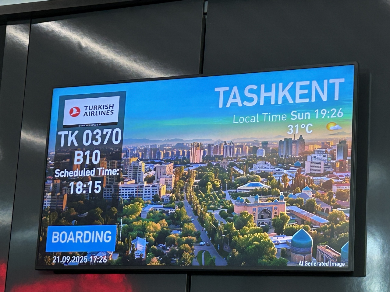 Ortszeit. Der Flughafen Taschkent wirkt im Vergleich zu Istanbul