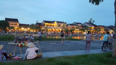 Das Wetter hat sich deutlich gebessert und die Sonne scheint schon seit dem frühen Morgen, was die Temperatur gleich erheblich in die Höhe treibt. Zum Glück gibt es in den kleinen Gassen ausreichend Schatten und hin und wieder kehren wir für eine Erfrischung in eine der vielen Bars / Restaurants ein. Gegen halb drei beschließen wir erst mal zum relaxen ins Hotel zu gehen. Um ca. halb sechs am Abend setzt hier die Dämmerung ein und als wir so gegen sieben zum Abendessen aufbrechen ist es bereits dunkel. Wir lassen uns ein letztes Abendessen in Hoi An schmecken und beschließen anschließend den Abend in einer Bar mit Bier und Cocktail mit Blick auf den Night-Market.