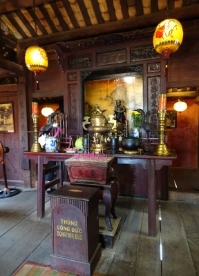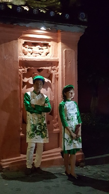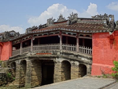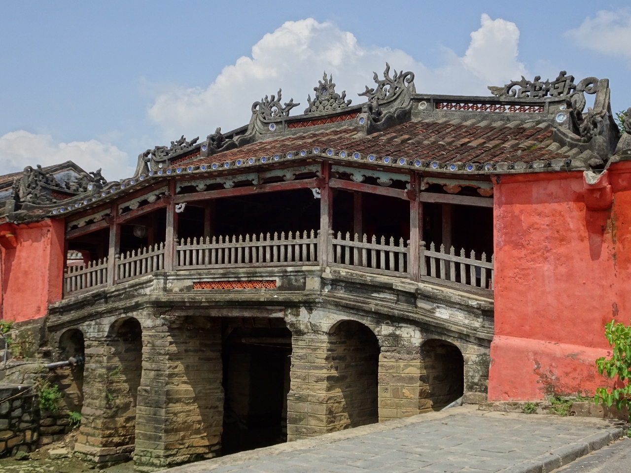 An unserem dritten Tag in Hoi An überlegen wir zunächst ob wir uns Fahrräder ausleihen sollen, aber irgendwie habe ich dazu keine rechte Lust. Wir schlendern also wieder ganz gemütlich to the old town und besichtigen einige der ausgewiesenen Kulturstätten wie z. B. die überdachte japanische Brücke, Handelshäuser und eine budistische Anlage. Eigentlich müsste man für all diese historisch bedeutsamen Bauten Eintritt zahlen, aber in unseren "Tickets" ist bereits der Eintritt für fünf dieser Gebäude enthalten. Bei manchen Bauwerken wird am Ticket ein Schnippsel abgeschnitten, bei anderen reicht es die Tickets vorzuzeigen. Welches Prinzip dahintersteckt - keine Ahnung.