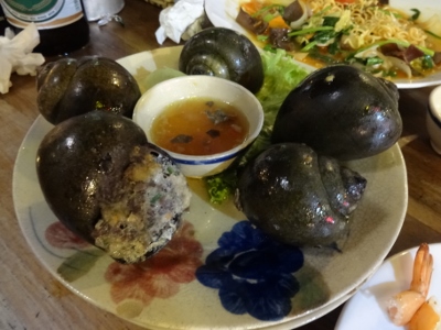 Der Rest des Tages ist schnell erklärt, Lunch, Ruhephase, Dinner. Für Letzteres kehren wir noch mal in die Ballermannstraße zurück, weil uns die Suche in der Innenstadt heute zu viel ist. Wir haben heute auch etwas mehr Glück, da kein Wochenende ist geht es etwas ruhiger zu und außerdem haben wir entdeckt, dass es ein paar nette Lokale ganz am Ende der Straße gibt, eines wird auserwählt und es gibt heute mal was exotisches, Schnecken. Außerdem klimpert einer auf `ner Gitarre, die ist zwar auch bestromt, aber die Lautstärke ist seeehhhr moderat. Noch mal, ich komme eigentlich mit fast jeder Art von Musik klar, wenn sie in adäquater Lautstärke dargeboten wird und es nicht von der Lautstärke der Musik die Schnecken aus dem Haus drückt. Irgendwann versucht sich der Gitarrenmeister dann an "Stille Nach, heilige Nacht" , vermutlich weiß er gar nicht um die Bedeutung der Melodie, aber wir amüsieren uns köstlich und überlegen nebenbei, wo wir dieses Jahr auf den Christkindlmarkt hinfahren.