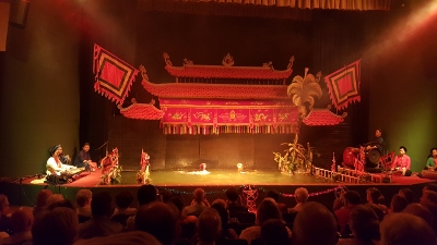 Gestern Abend stand ein Besuch des Wasserpuppen-Theaters auf dem Programm. Anscheinend ein Muss für jeden Touristen, jedenfalls war die Vorstellung ausverkauft.