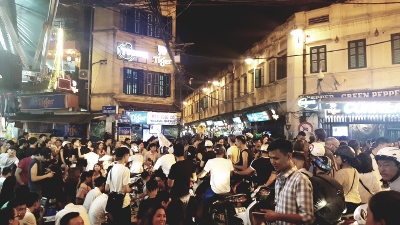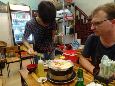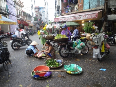 Hat man den See vor unserem Hotel halb umrundet kommt man sogleich in die Altstadt von Hanoi. Diese ist ein bunter Mix aus Wohnhäusern, Baracken, Tempeln, Garküchen, Verkaufsläden, Bars und Restaurants und dazwischen immer wieder kleine noble Boutique-Hotels. Die vielen verschiedenen Eindrücke sind atemberaubend. Das wir uns in einem kommunistischen Land befinden merkt man nicht. Zwischen all den Mopeds sieht man auch immer wieder Luxusautos (Mercedes SEL, Porsche Cayenne etc.); Fahrräder sieht man nur vereinzelt. Auch scheint jeder Einwohner ein Handy zu besitzen und Moped oder Auto zu fahren und gleichzeitig zu telefonieren scheint hier nicht verboten zu sein. Vielleicht verhält sich das aber auch wie mit den roten Ampeln.