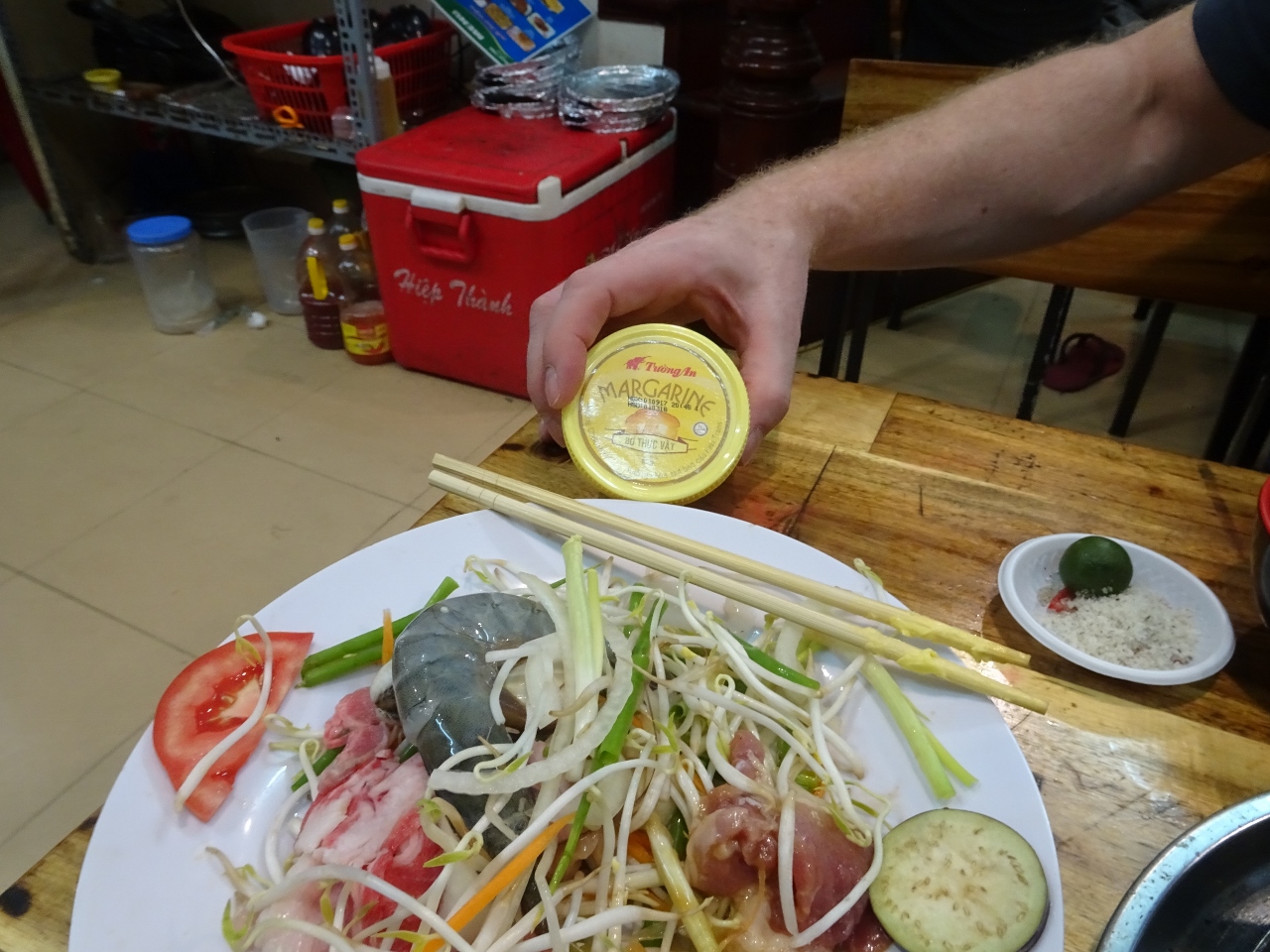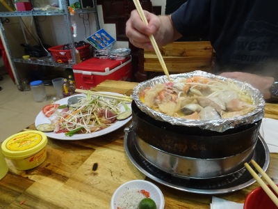 Die Vietnamesen sind durchweg alle sehr klein und schmächtig; scheinen aber über eine ernorme Kraft zu verfügen. Wenn man sieht, was die so auf ihren Fahrrädern und Mopeds transportieren, da kann einem ganz schlecht werden. Auch das sitzen auf den Kinderstühlen und Hockern ist für Europäer gewöhnungsbedürftig.