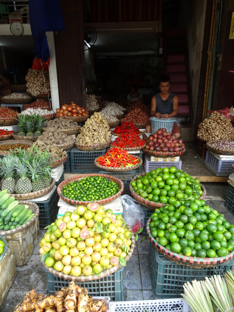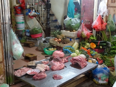 Gestern waren wir noch in der Markthalle; also eigentlich sah es dort für mich eher aus wie in einem Warenlager. In der Halle gibt es nur Non-Food-Artikel, alles andere wird um die Markthalle herum verkauft.