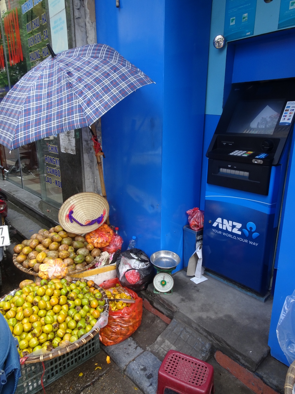 Irgendwie habe ich das Gefühl, hier ist alles ein bißchen extrem. Die Menschenmassen, die Luftfeuchtigkeit, die Mengen an Waren und ganz besonders natürlich auch der Regen. Er beginnt von einer Minute auf die andere und zwar nicht erst tröpfchenweise, sondern gleich sintflutartig.