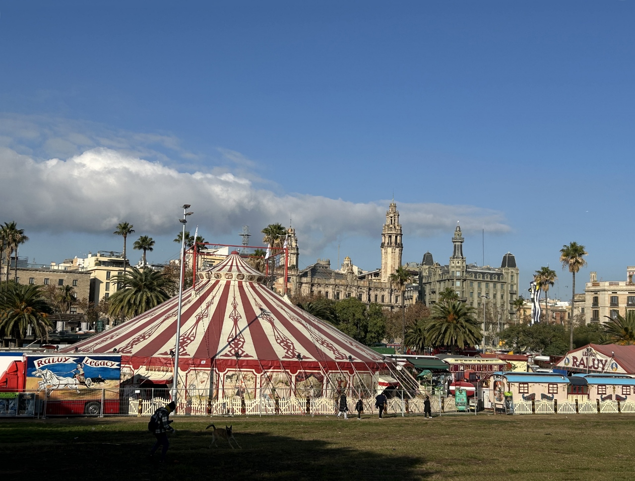 Buden und Attraktionen aufgebaut. Auch ein Zirkus hat hier sein