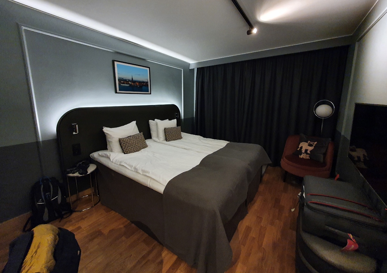 Es ist bereits dunkel als wir in Stockholm landen. Beim Landeanflug auf den Flughafen Arlanda hatten wir eine wunderschöne Sicht auf die Millionen Lichter welche die schwedische Metropole erhellen. Bereits von zuhause hatten wir ein Taxi für die Fahrt vom Flughafen zum Hotel gebucht und nach kurzer Wartezeit - unser Flug war ein wenig zu früh - erscheint unserer Taxifahrer und bringt uns in ca. einer dreiviertel Stunde zum Hotel.
