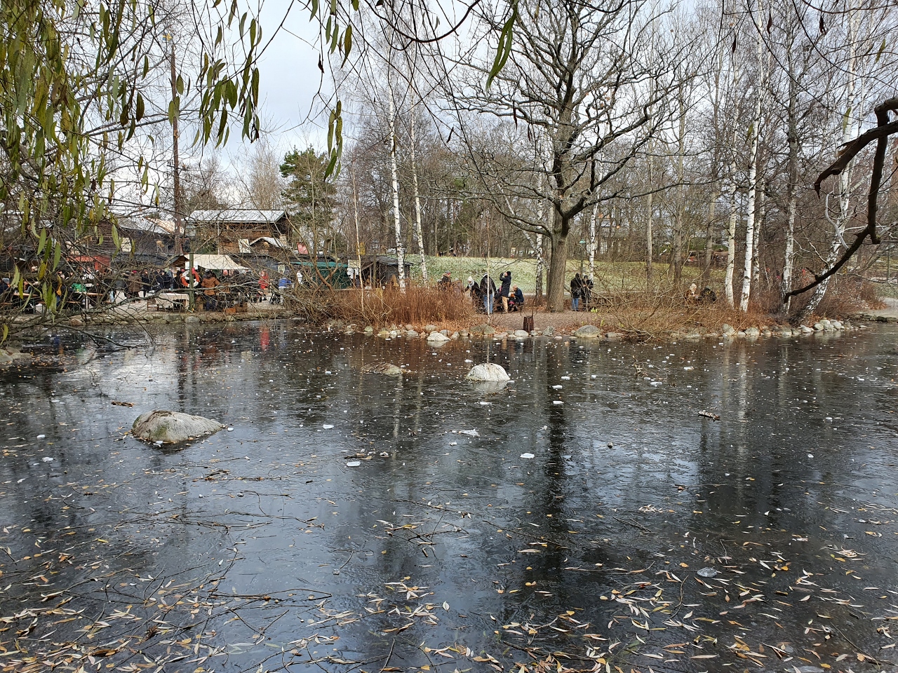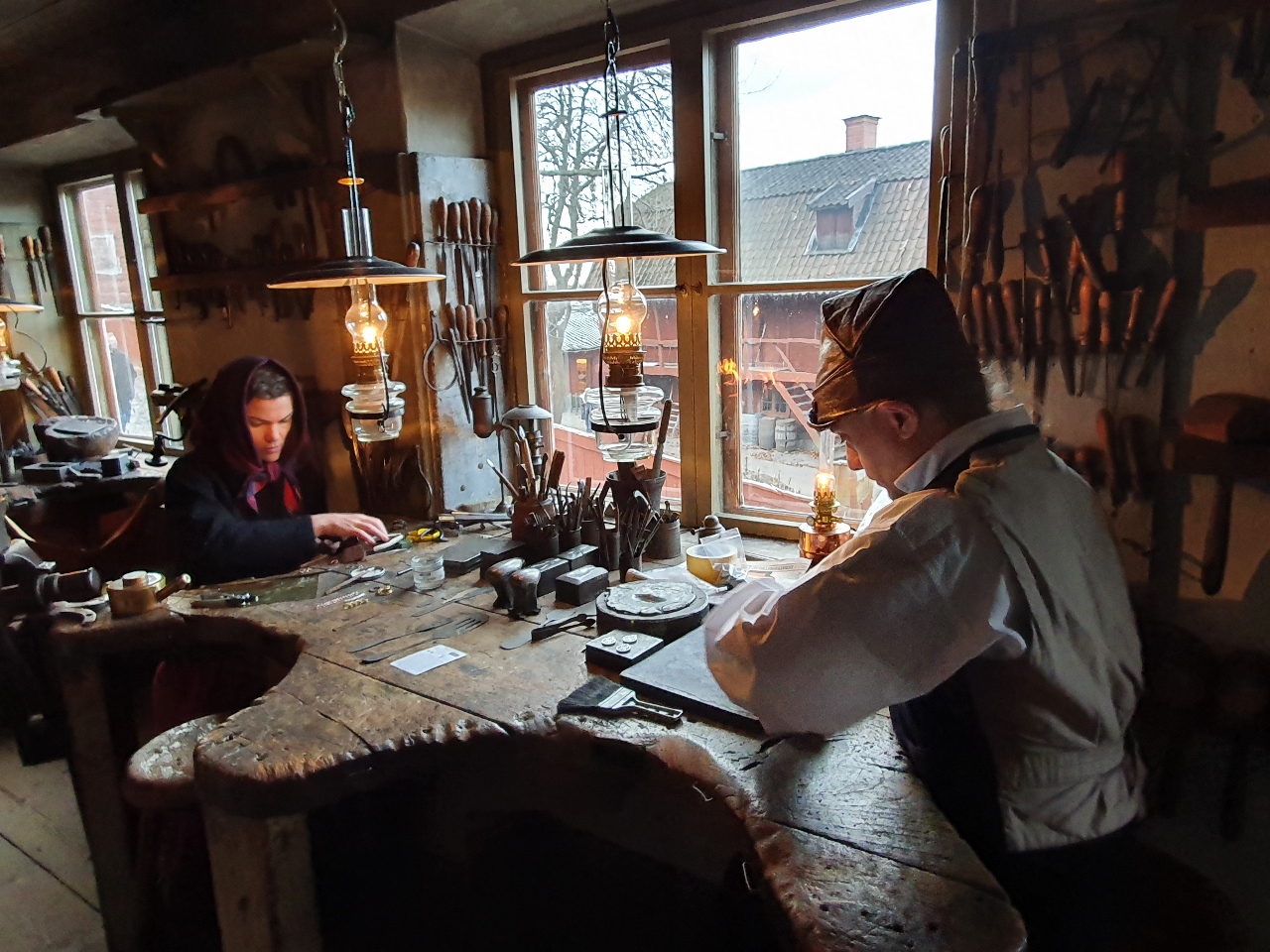 Neben dem Museumsteil, in dem dutzende alte schwedische Häuser und Werkstätten nachgebildet sind, in denen auch Leute dem jeweiligen Handwerk in historischem Gewand nachgehen, ist der Weihnachts- oder Julmarkt hier ganz klar die Hauptattraktion. Die Stimmung ist ausgelassen, trotz eisiger Minusgrade wird fröhlich flaniert oder sogar zur Musik einer Liveband getanzt. In erster Linie sind das Kinder bzw. Familien, die Musik ist wohl eher im Kindermusikbereich anzusiedeln.