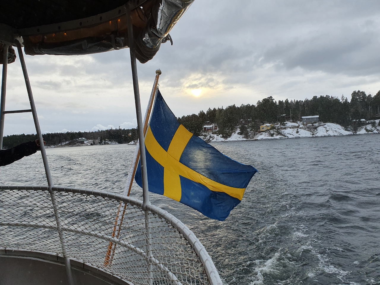 Die dreistündige Fahrt ist sehr kurzweilig, für Getränke an Bord ist auch gesorgt, der Glögg ist diesmal mit Alkohol und das nicht zu knapp. Außerdem werden uns jede Menge interessante Informationen geliefert, über die Stadt Stockholm, ihre jetzigen Bewohner und auch über die aus der Vergangenheit. Über Schweden und seine Traditionen und Gebräuche, kurz eine Geschichts-, Geographie- und Politikstunde in einem. Das Ganze auf Deutsch und auf englisch wir lauschen gespannt und geniessen den wunderbaren Ausblick, der durch die Schneedecke noch ein besonderes i-Tüpfelchen erhält.