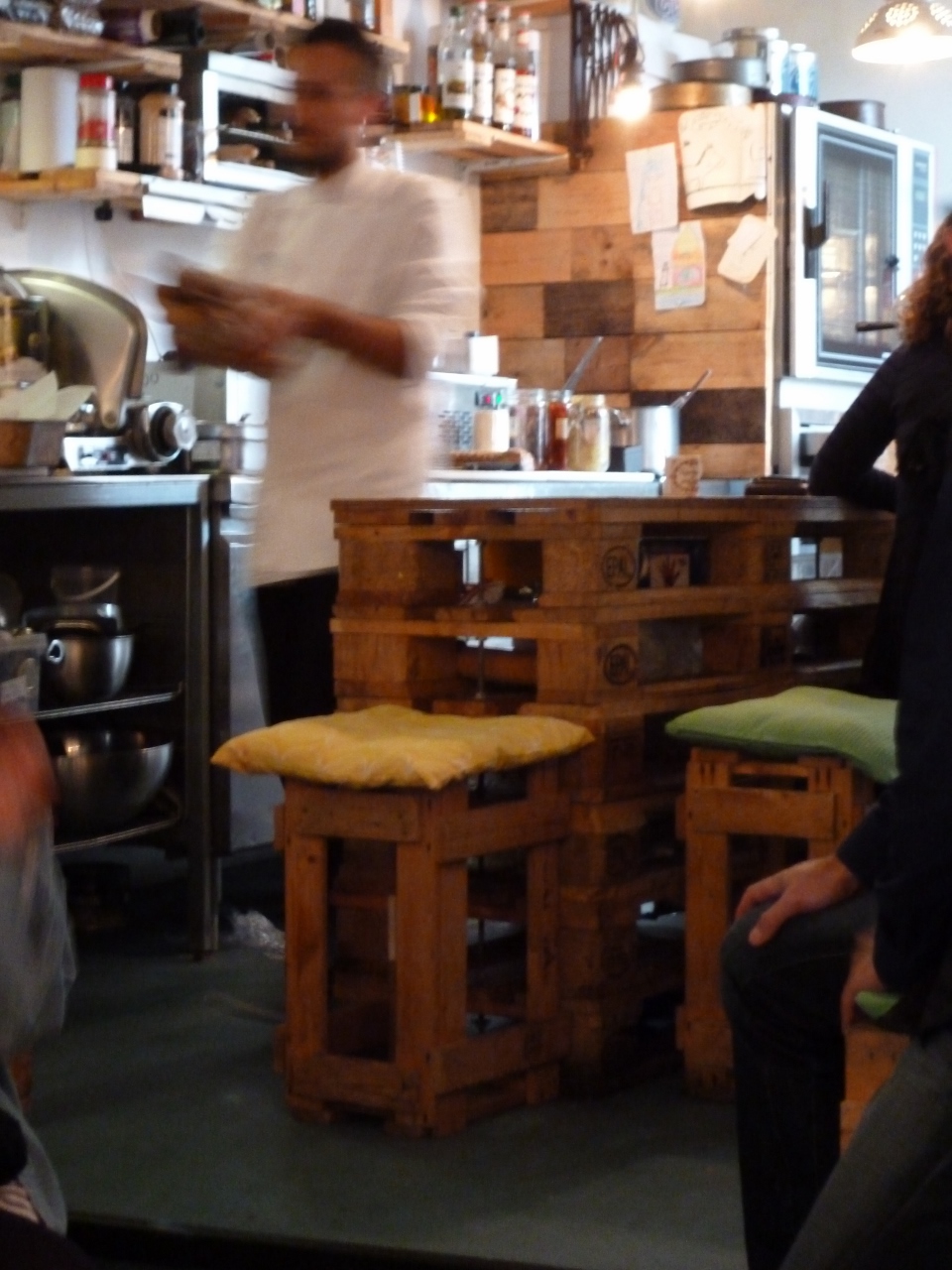dieser Läden ist eine Katze zu Hause, die schon mal auf dem Tisch oder zumindest auf einem der Stühle schläft. Mal dienen zusammengenagelte Euro-Paletten als Theke,