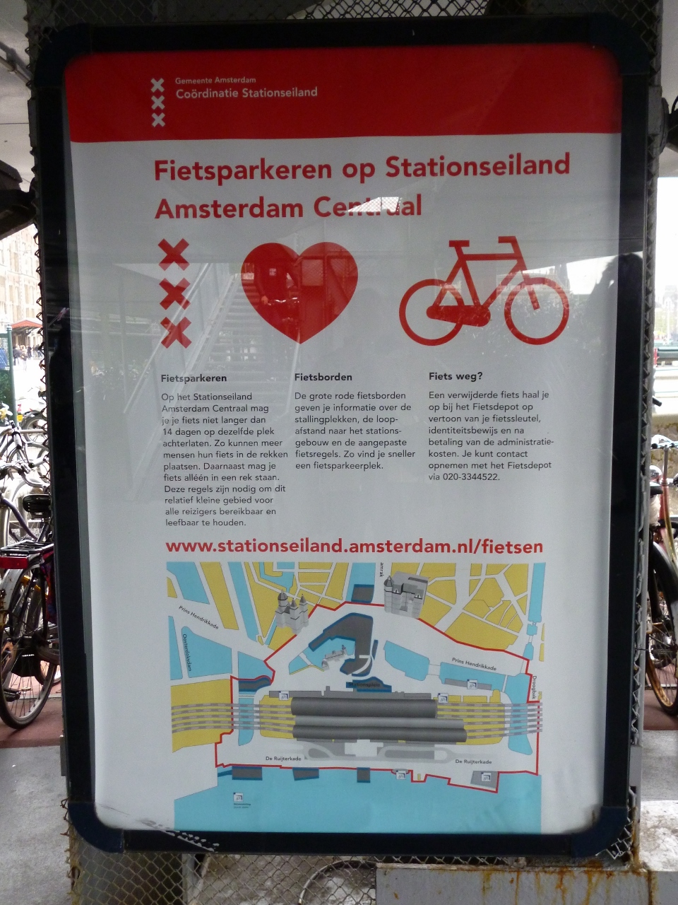 hinterher die Tür wieder zu öffnen ist. Dann bringen wir unsere Räder zum “Fietsparkeren op Stationseiland Amsterdam Central” , also ins Fahrradparkhaus und wir drehen noch mal eine