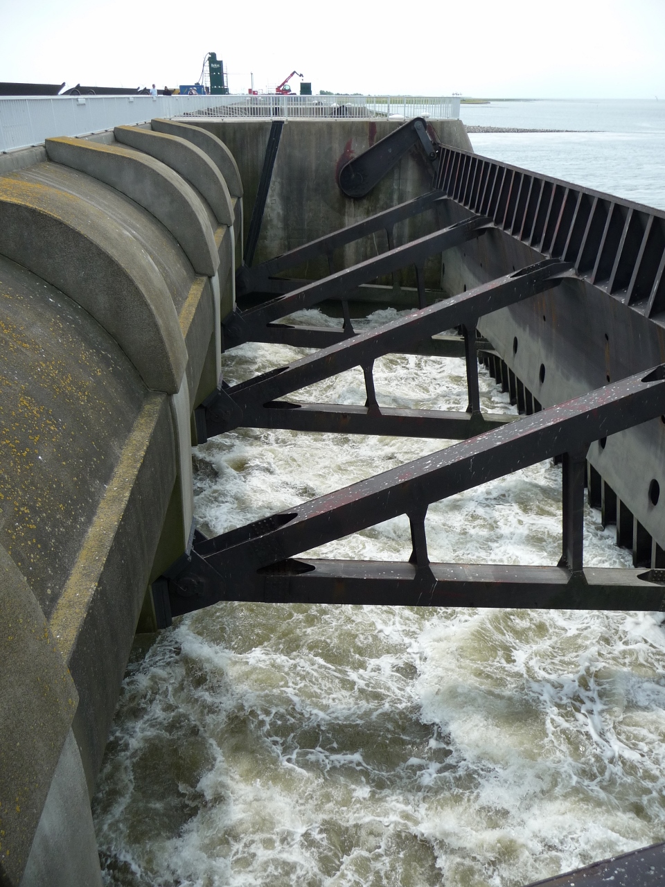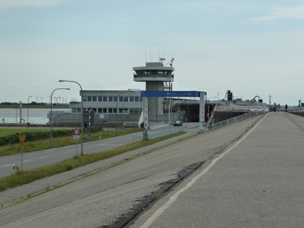 wir auf die breiten Salzwiesen. Nach ca. 20 km erreichen wir das Eidersperrwerk und verlassen damit gleichzeitig den Landkreis Nordfriesland. Auf der