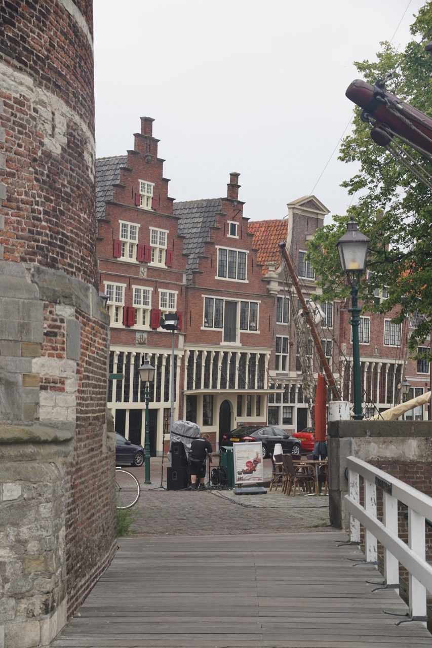 Im Hafen von Hoorn spielt sich eine ziemlich bizarre Szene ab, wir hatten bereits jede Menge Leute in landesüblicher Tracht umherlaufen