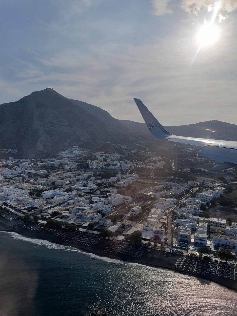 Wir starten mit einem Flug nach Santorini und bleiben dort fünf Tage.