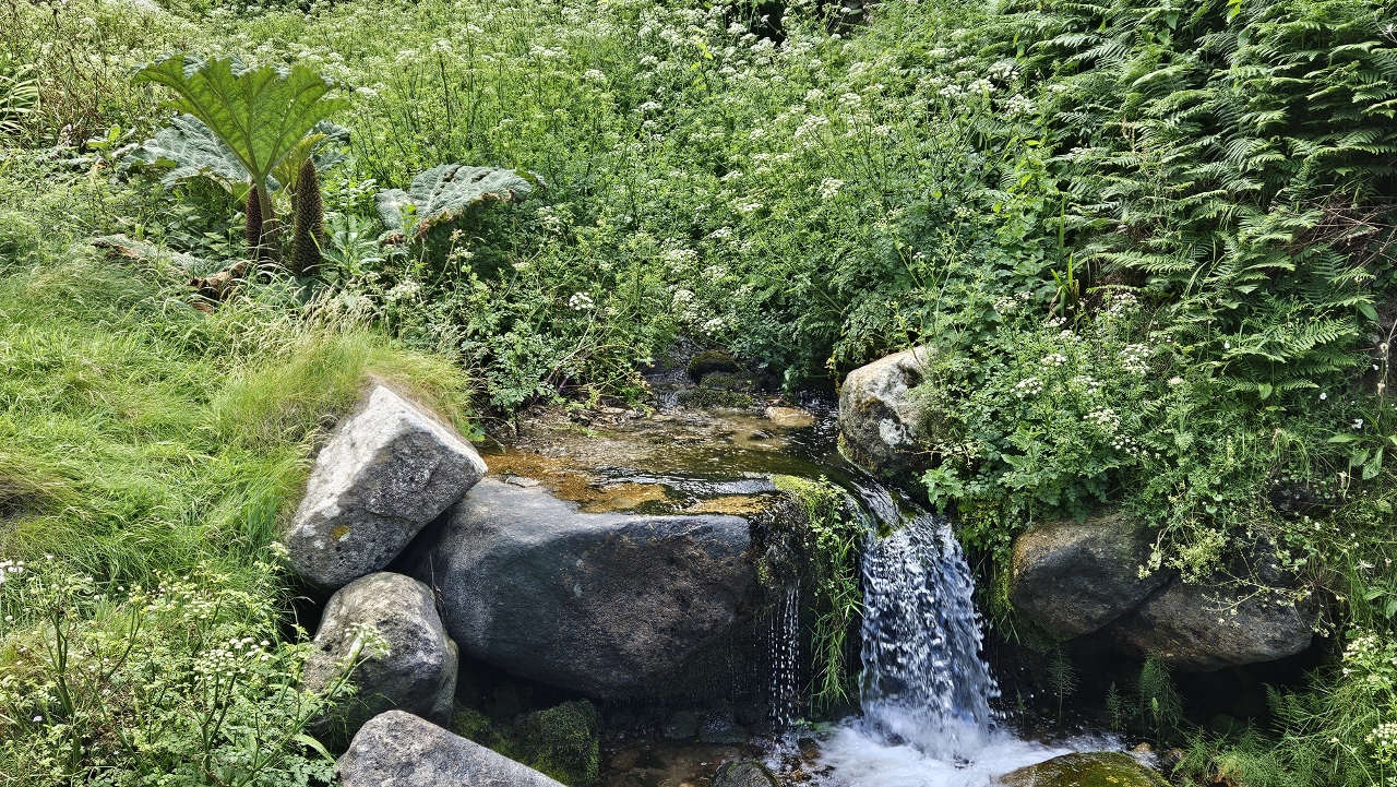 wir die Regenjacken wieder aus und wandern im Sonnenschein dahin.