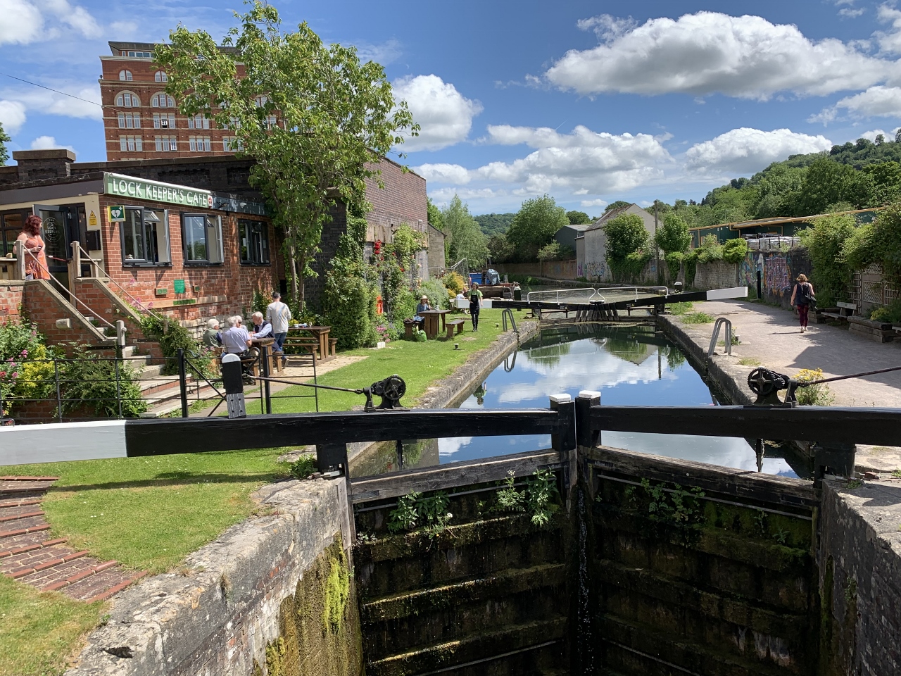 kommen an ein paar knuffigen Häuschen vorbei und als wir in Stroud einlaufen, sehen wir einen schönen Pub mit einem