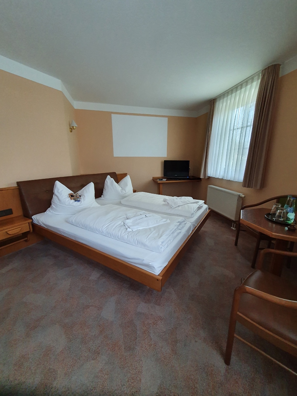 Also sind wir gegen 16:00 Uhr am Samstag nachmittag angekommen und haben unser Hotel gleich gefunden. Wir wussten von der Internet Recherche, dass das Restaurant in unserem Hotel geschlossen ist, aber es gibt noch mehr davon hier. Sagt auch die Hotelwirtin und nennt uns einige Häuser. Sollte sich noch als grotesker Irrtum herausstellen...
