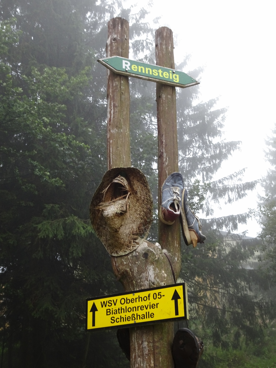 Wir ziehen also los, bergab durch den Ort und gegenüber wieder bergan Richtung Biathlon Stadion zum sogenannten Grenzadler, heute aber nicht entlang der Straße, sondern durch den Wald.