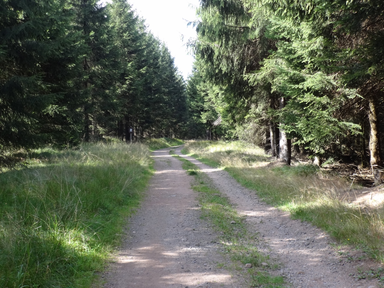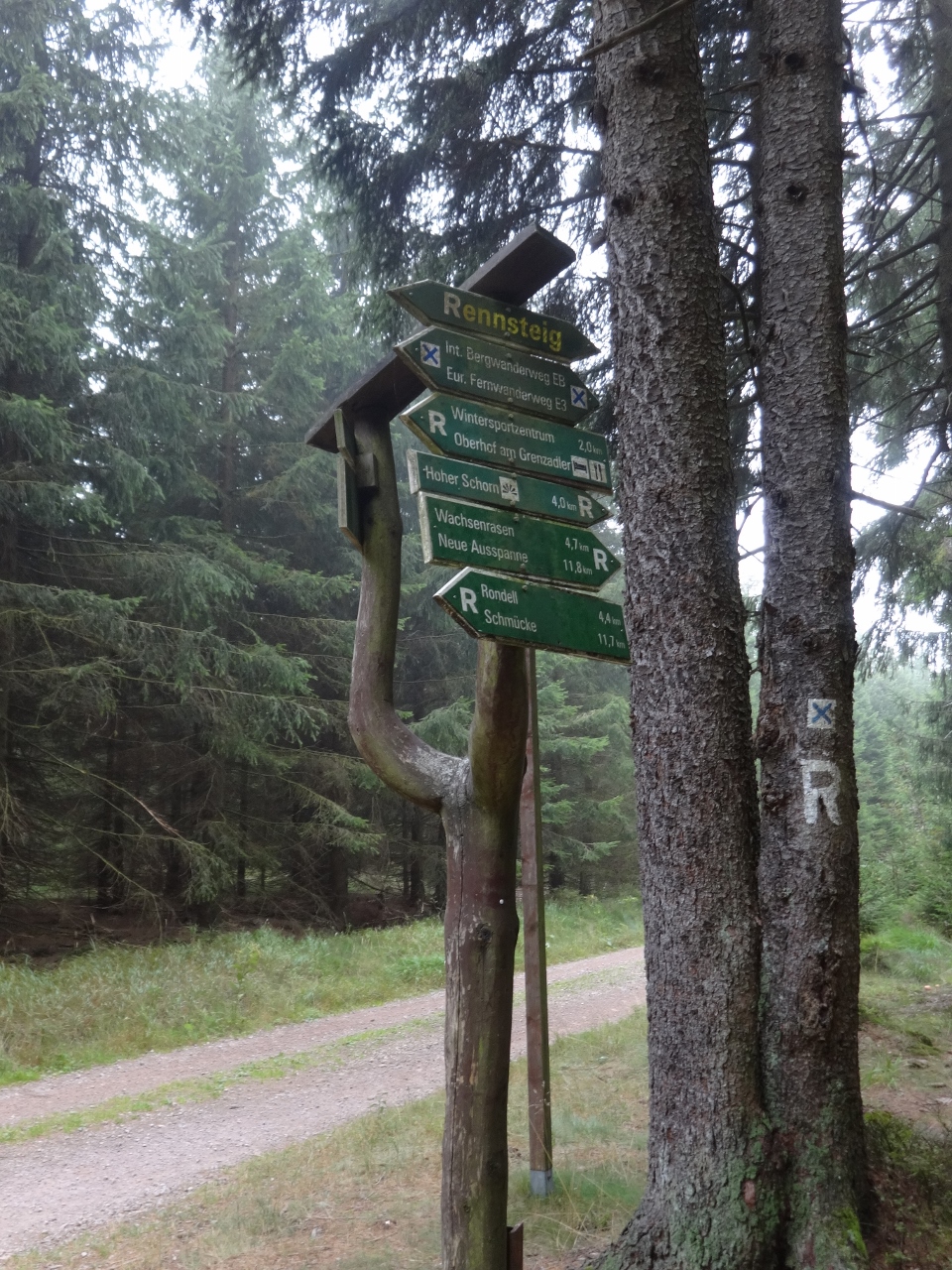 Vom Grenzadler wandern wir in den Wald, es wird einsamer und ruhiger, jetzt sind wir wirklich in der Einsamkeit des Thüringer Waldes. Man könnte Angst bekommen...