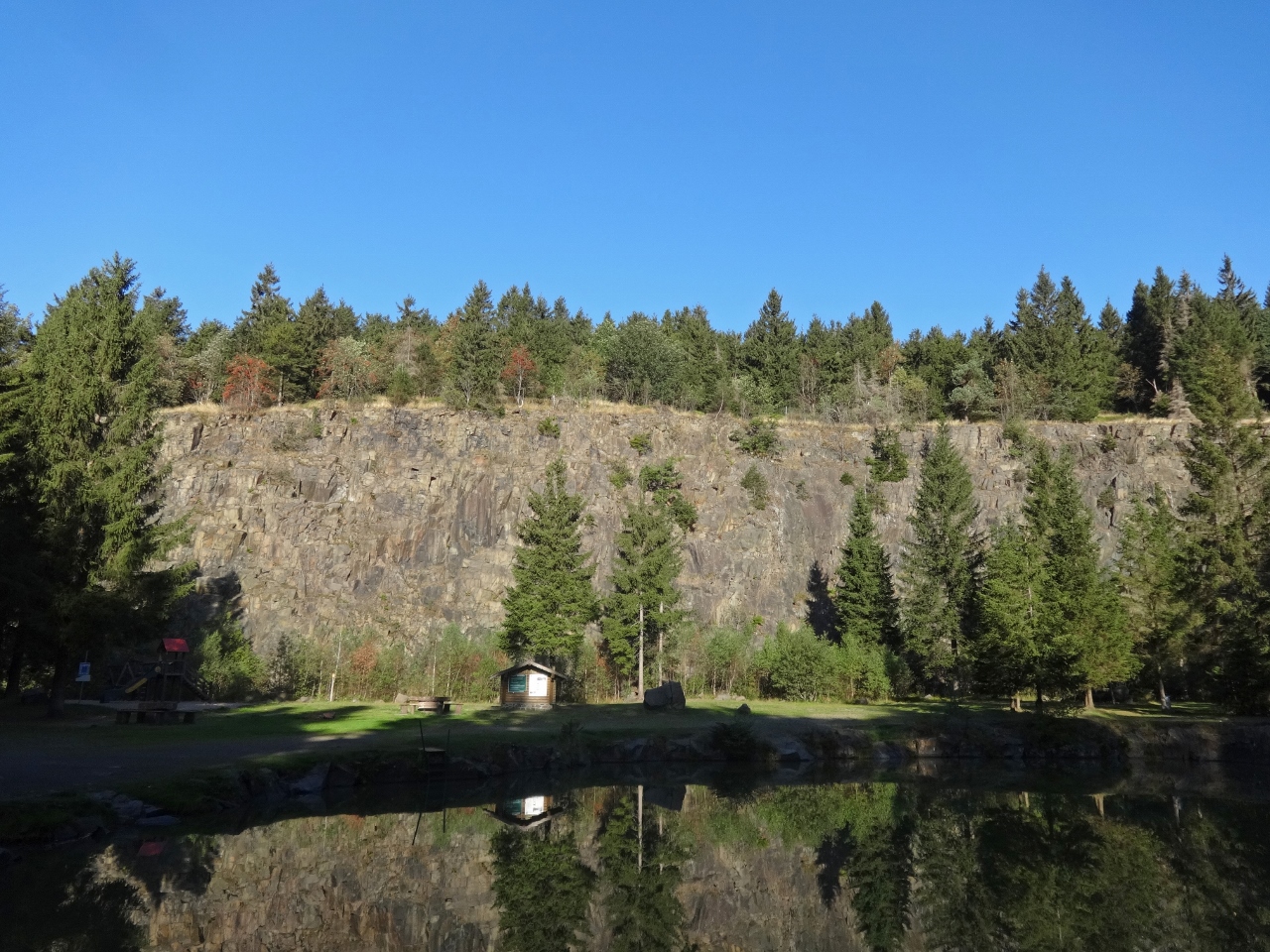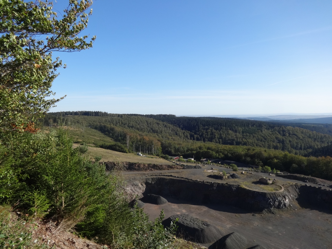 Wenig später komme ich an einen Aussichtpunkt, der einen wunderbaren Ausblick gibt, nicht nur auf den direkt darunter liegenden Schieferbruch.