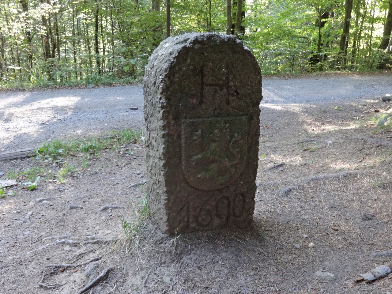 Dann ziehe ich los, die ersten Kilometer sind sehr einfach zu gehen, ich sehe wieder viele Grenzsteine, hier war in früheren Jahren die Grenze zwischen der Landgrafschaft Hessen und dem Herzogtum Sachsen-Gotha. Ein Grenzstein mit dem hessischen Löwen zeugt noch davon.