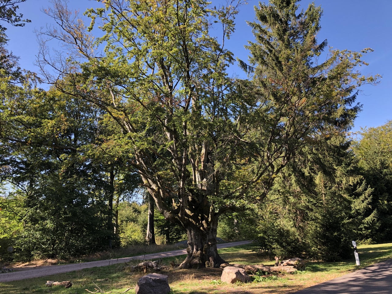 Dann, wenige hundert Meter weiter ist es geschafft, der Gipfel der heutigen Wanderung, der Große Inselberg. Hier steppt wirklich der Bär, der Parkplatz ist zum bersten gefüllt, die Terrasse des Wirtshauses bietet keinen Platz mehr. Gut, dass ich bereits gestärkt bin und so ziehe ich recht bald weiter.