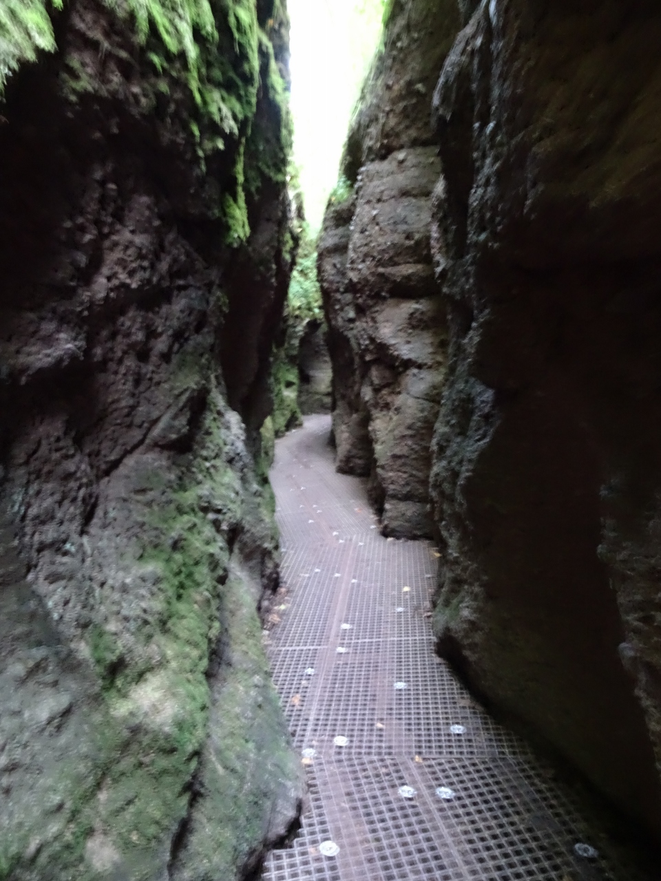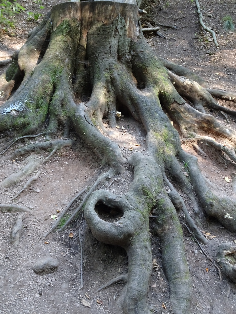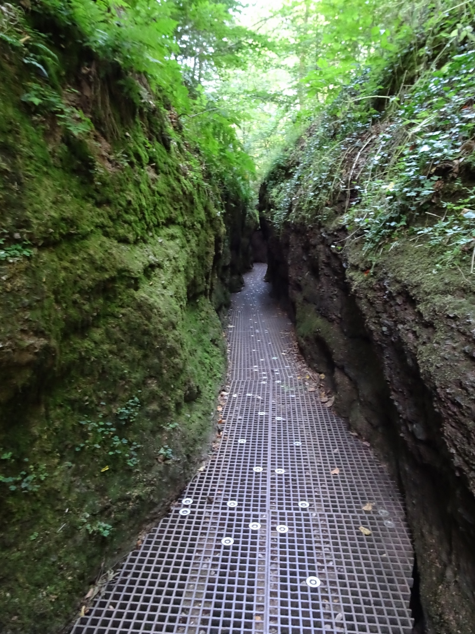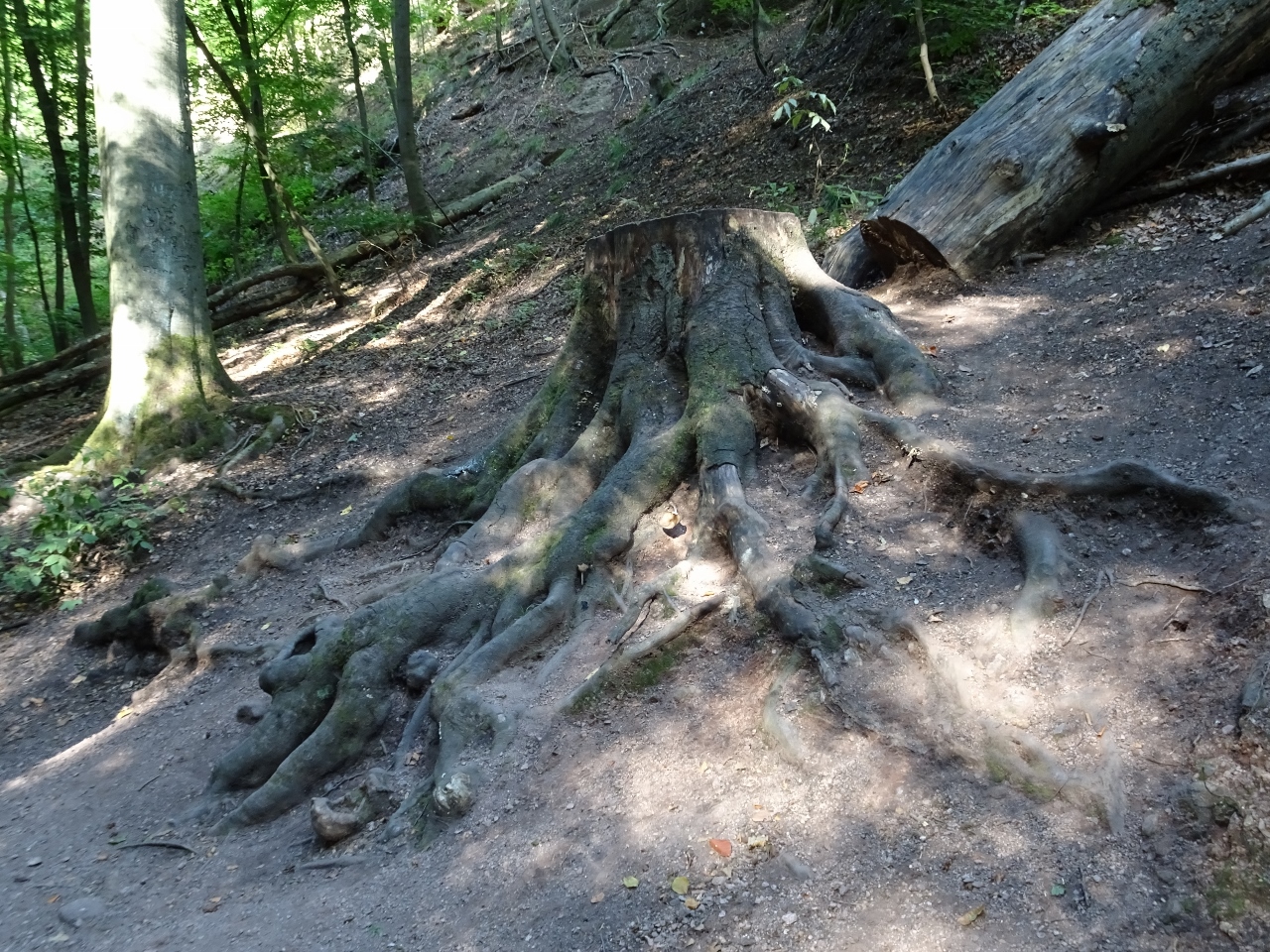 Am frühen Nachmittag kommen wir an der "Hohen Sonne" an, einem Park- und Rastplatz, der Ausgangs- und Zielpunkt zahlreicher Wanderer ist. Es ist Samstag, entsprechend voll ist es hier, wir machen trotzdem kurz Rast, von hier ab geht es nur noch durch eine der Schluchten abwärts nach Eisenach. Wir wählen die laut aller Recherchen spektakulärste, die Drachenschlucht. Obwohl hier wirklich Rush-Hour herrscht, ist es ein eindrucksvolles Naturschauspiel.