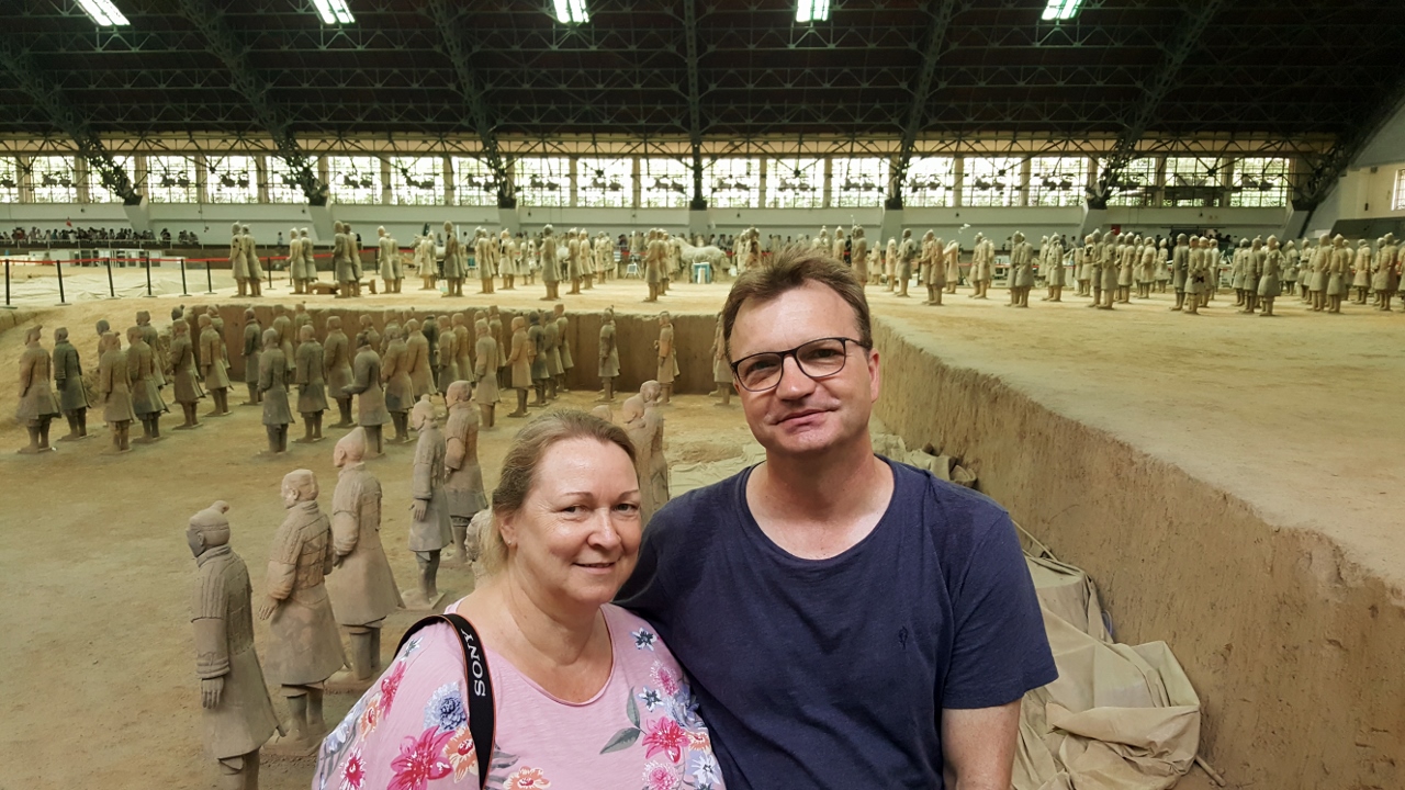Also führt uns Lilly (scheint ein beliebter Nick-Name zu sein) zum Eingang und plaudert munter drauflos. Nachdem wir sie ein wenig gebremst haben und sie etwas langsamer spricht, ist sie hervorragend zu verstehen. Sie erzählt uns ausführlich die Geschichte der Entstehung der Armee und einiges über die Ausgrabungsstätten, derartige Informationen hätten wir ohne Guide niemals bekommen.